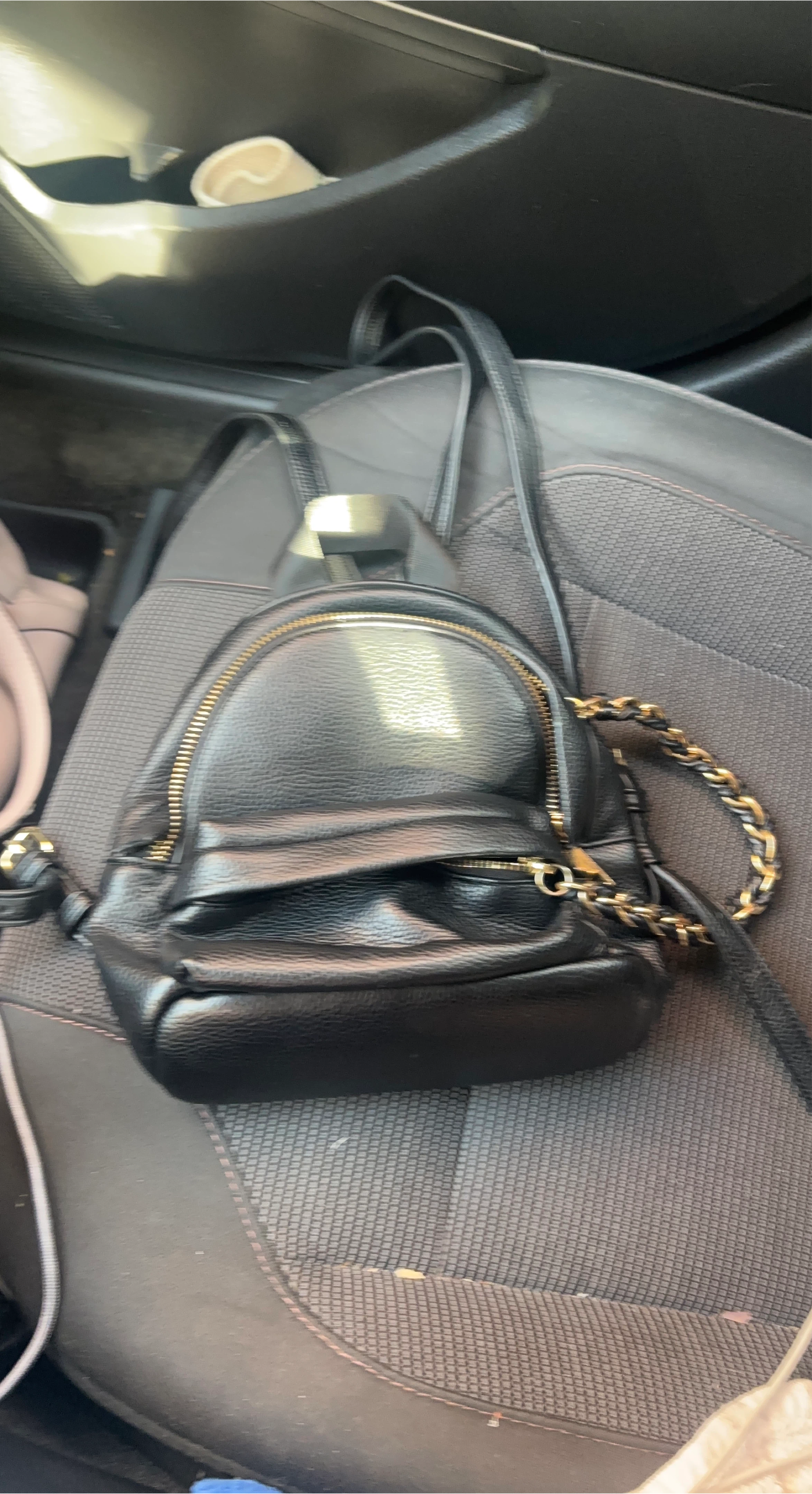 65Cute black mini backpack with gold chain detail! It's in great condition and perfect for carrying essentials