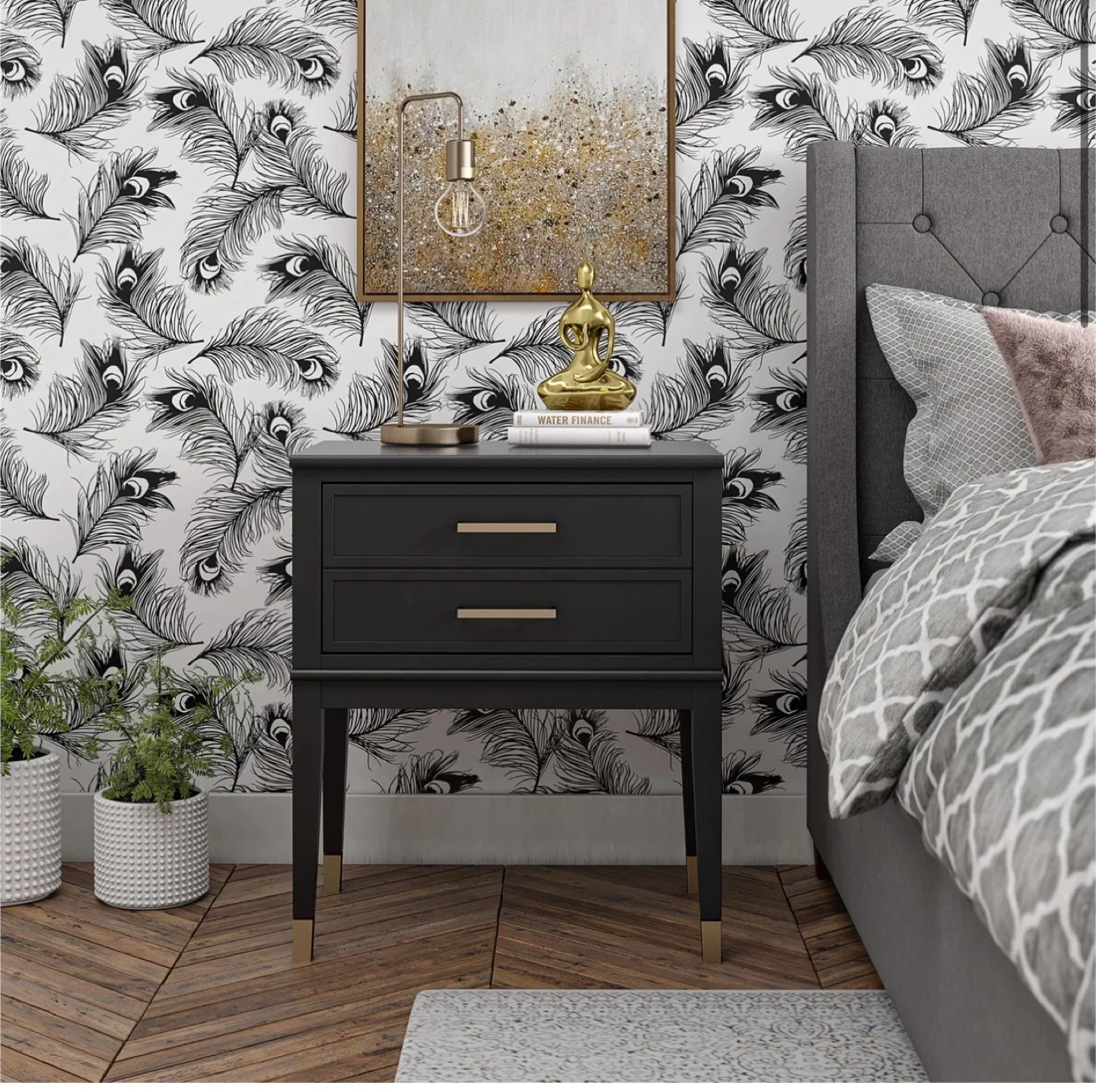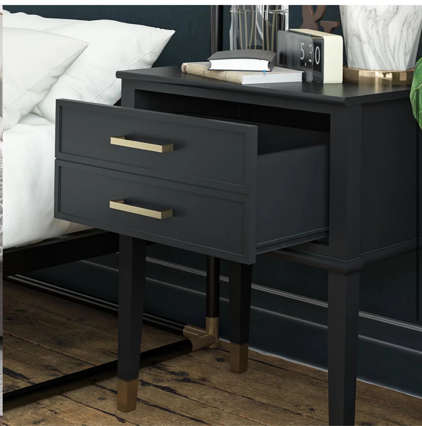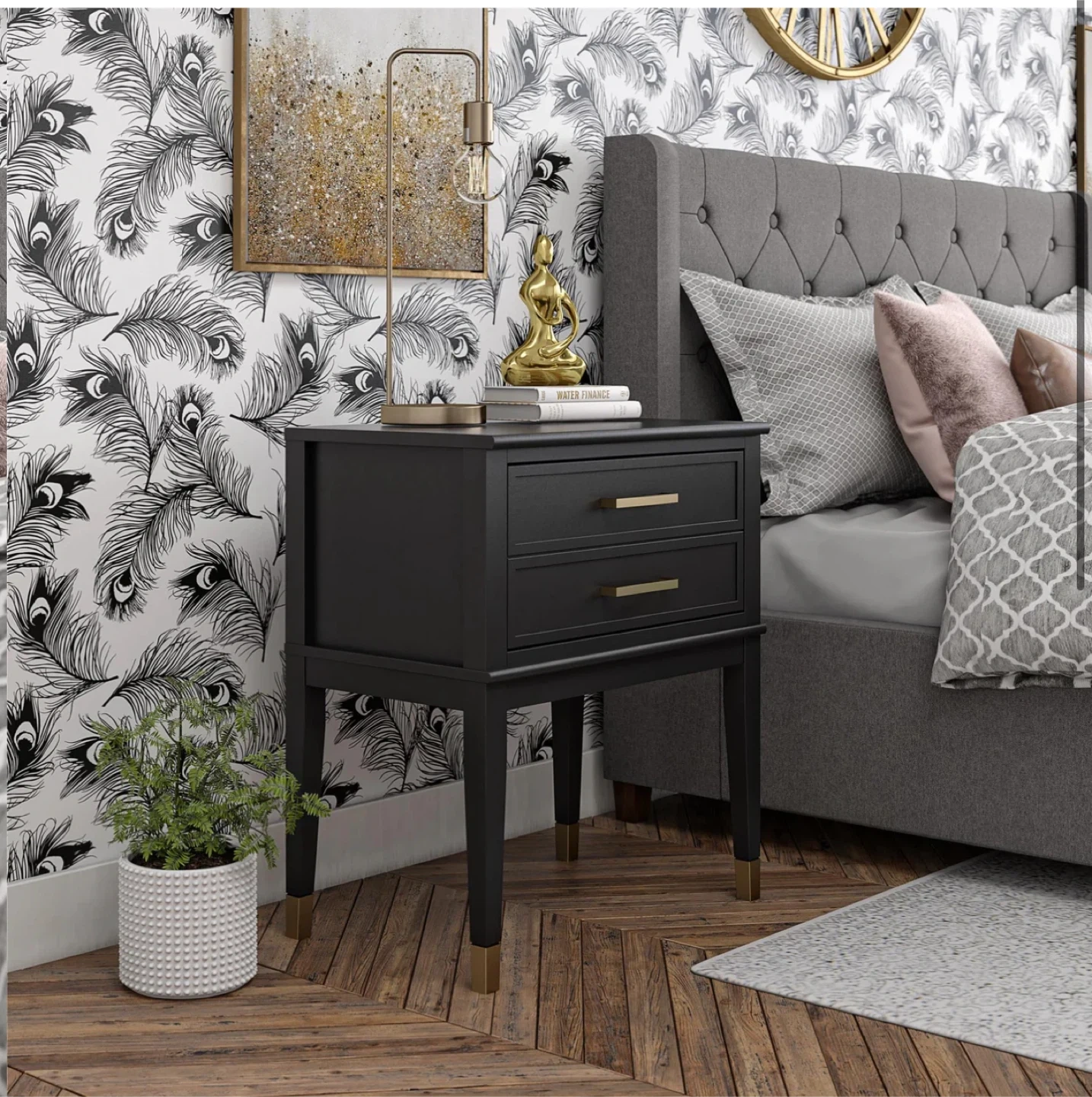 Show allBlack Nightstand with Gold Accents