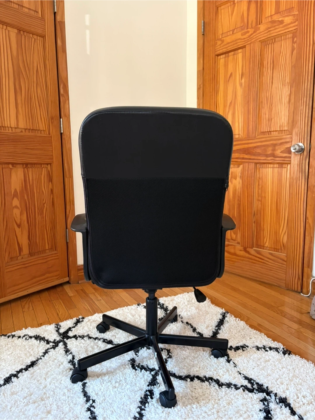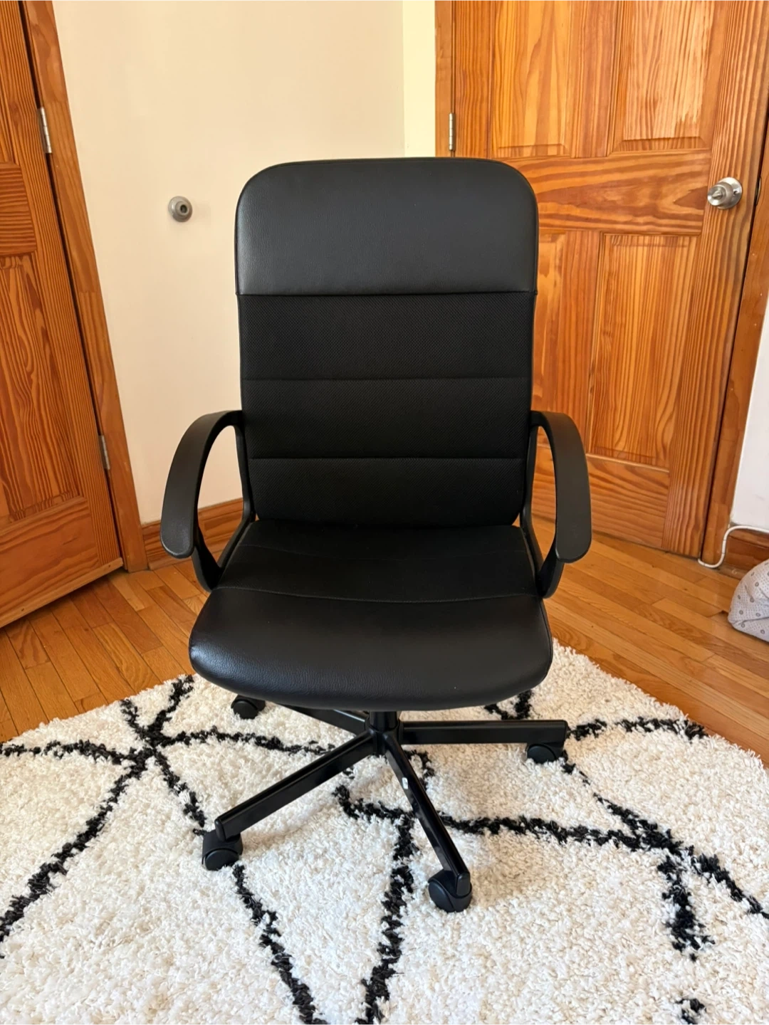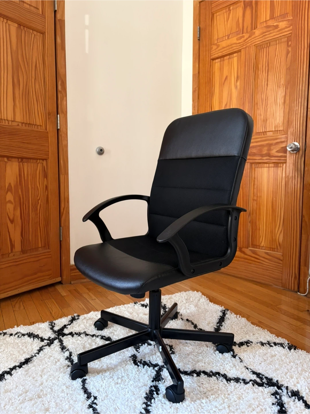 64Selling a black office chair in good condition. It's perfect for your home office or study space. The chair features a comfortable seat and backrest, along with adjustable height and swivel function for added convenience