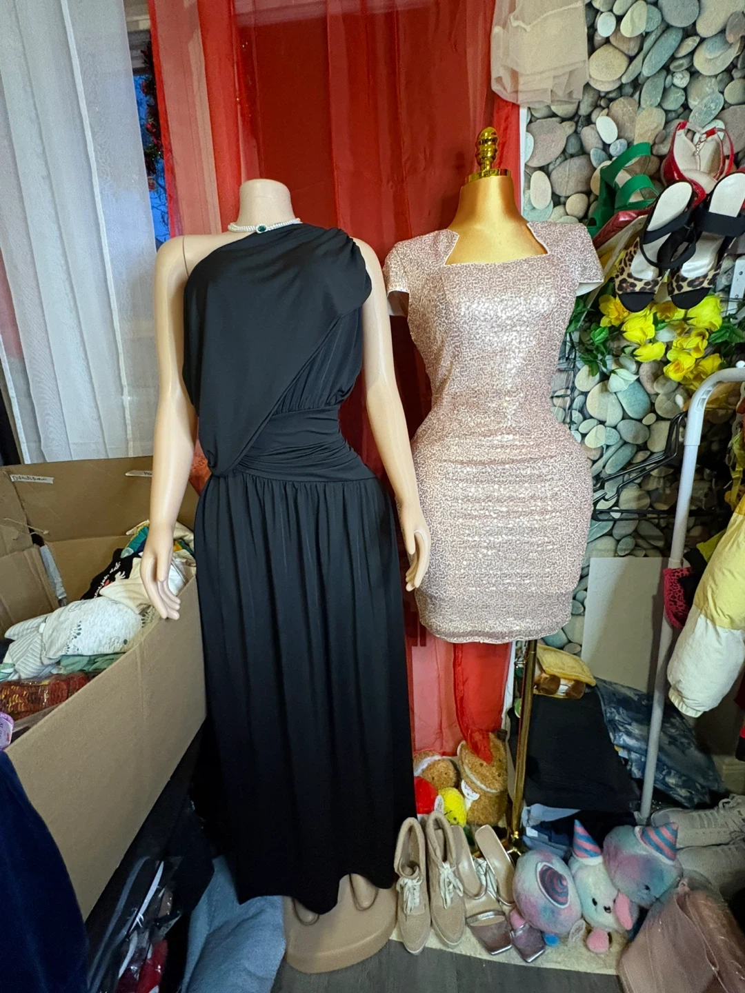 153Selling a stylish black one-shoulder maxi dress. It's in great condition and perfect for any special occasion or evening out. The dress features a flattering silhouette and comfortable fit. It is made of a soft, flowing material that drapes beautifully. Feel free to reach out if you have any questions!