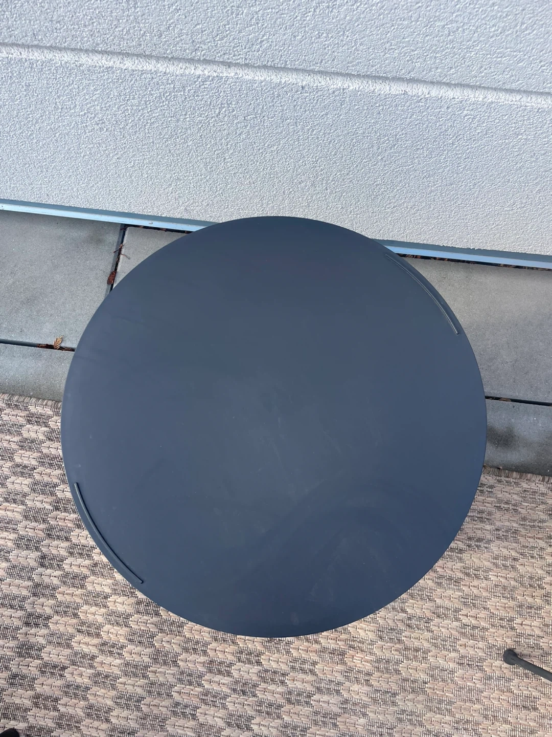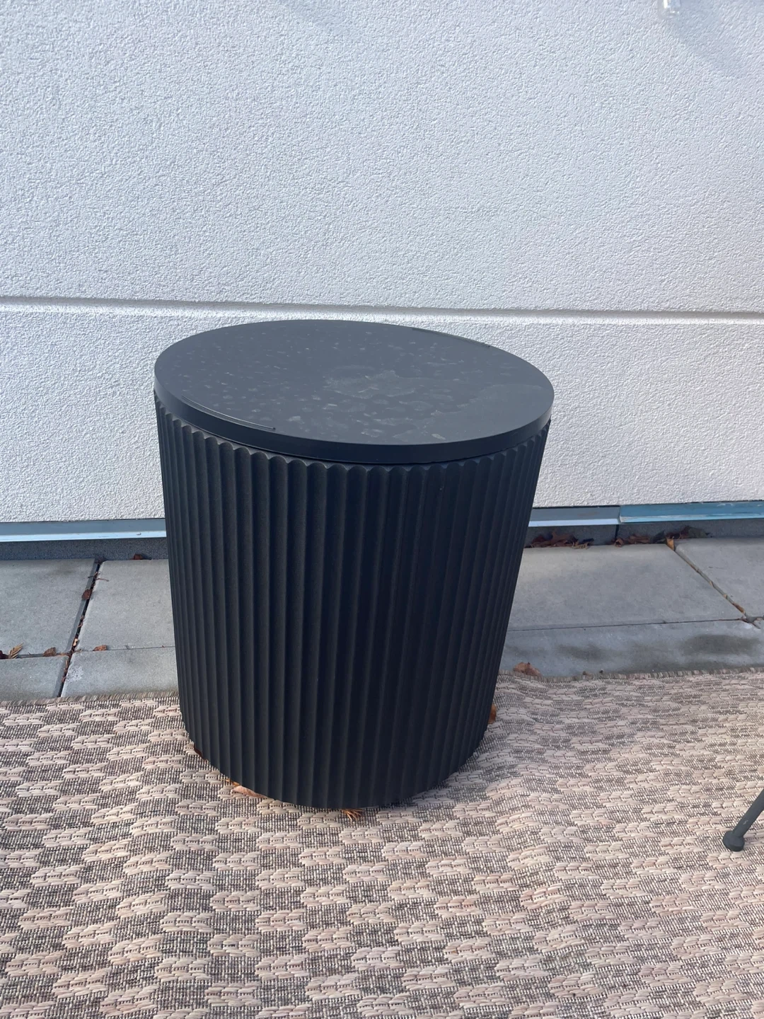 5This is a black outdoor side table with storage. It's perfect for keeping your patio or deck tidy, keeps your drinks cool with the cooler function. The table is in good condition and ready for a new home!