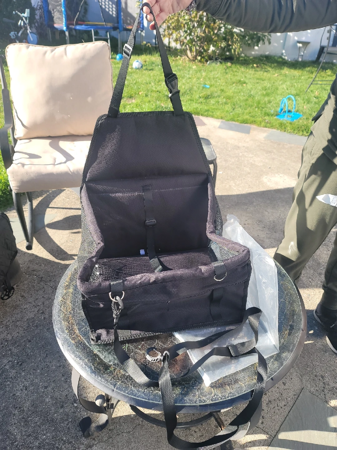 11I'm selling a black pet car seat carrier. It's new. never used and ready to keep your furry friend safe and comfortable on car rides