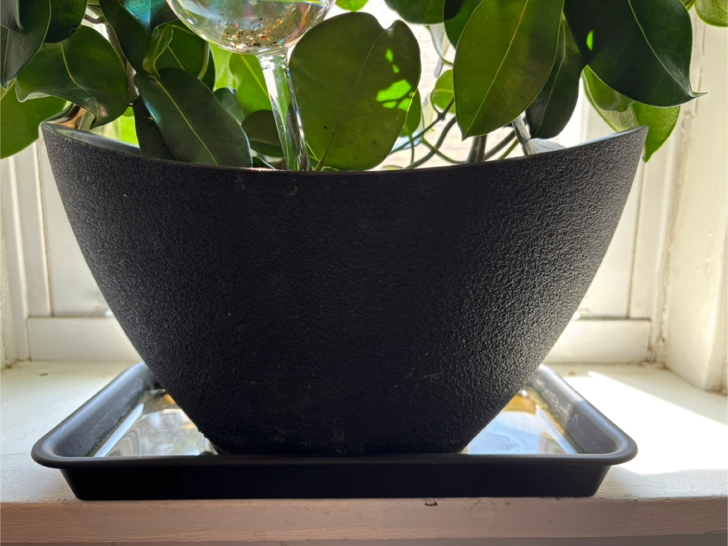 Selling a black plant pot that comes with a matching tray! It's in great condition and perfect for adding a touch of greenery to your space. Both plants included , call it Jasmine.