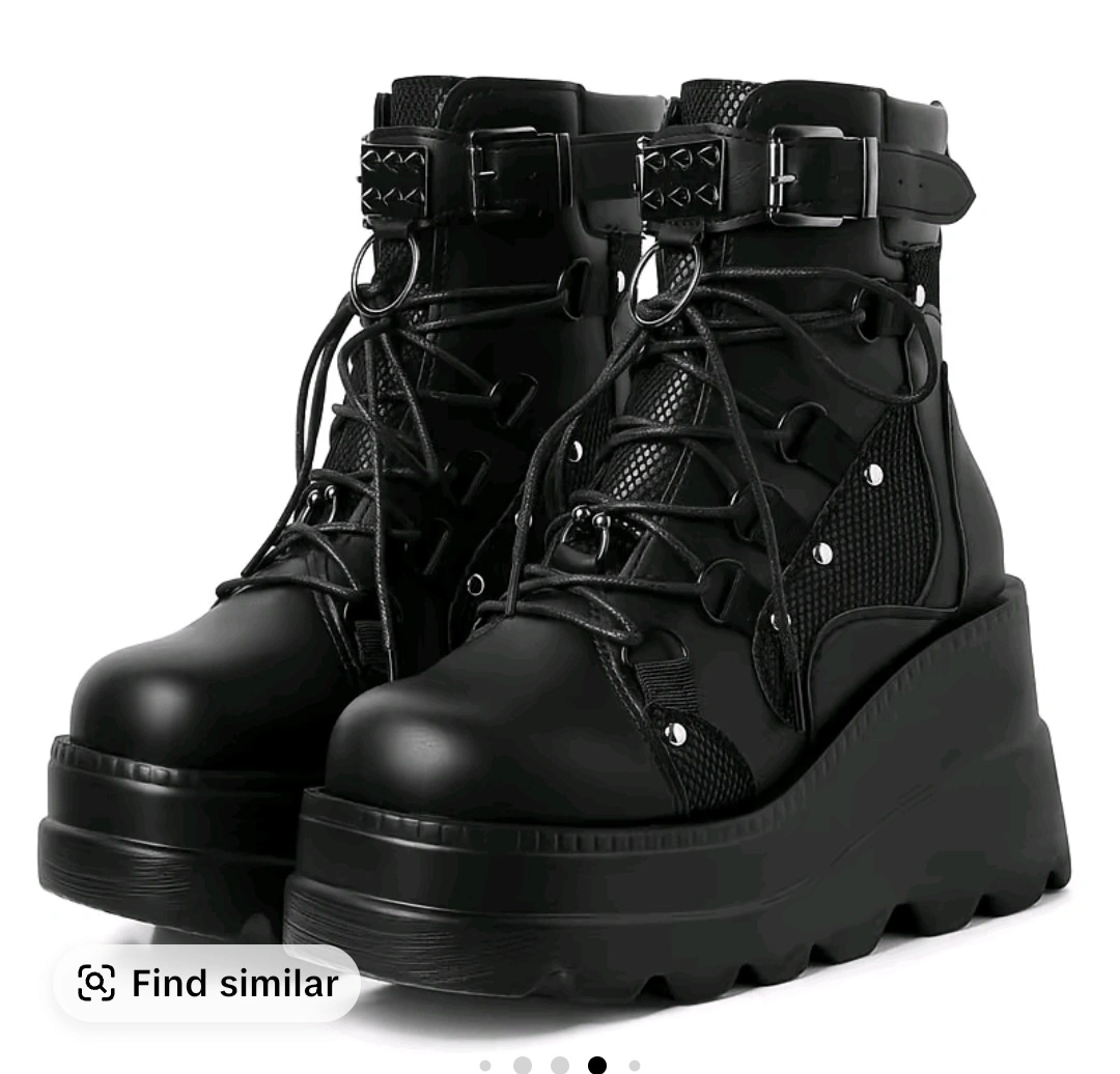 Selling a pair of black platform boots. They feature a lace-up front with buckle detailing and a chunky platform sole. Great for adding some edge to your look!