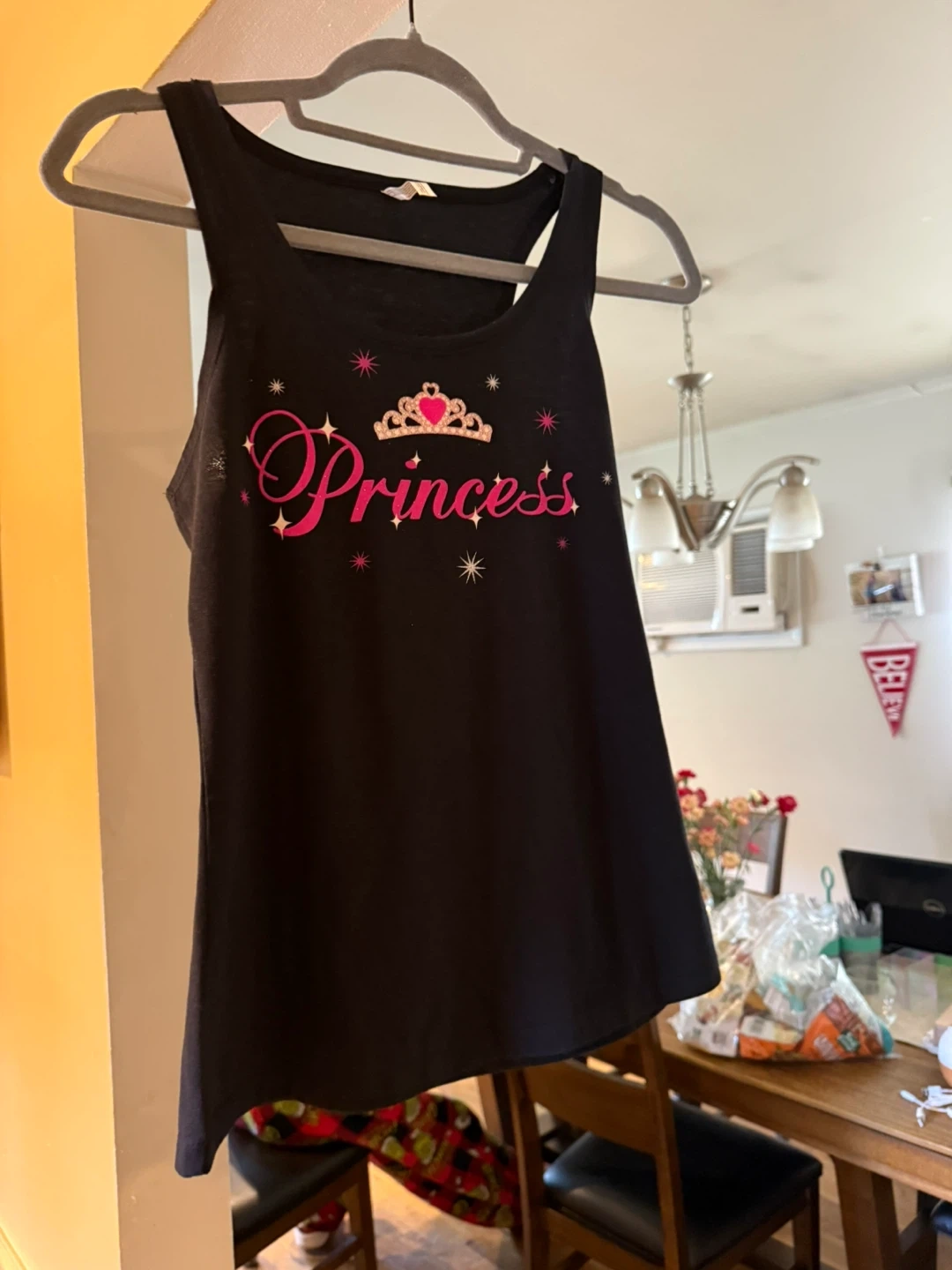 Cute black tank top with a 'Princess' design. It's in great condition and ready for a new home!