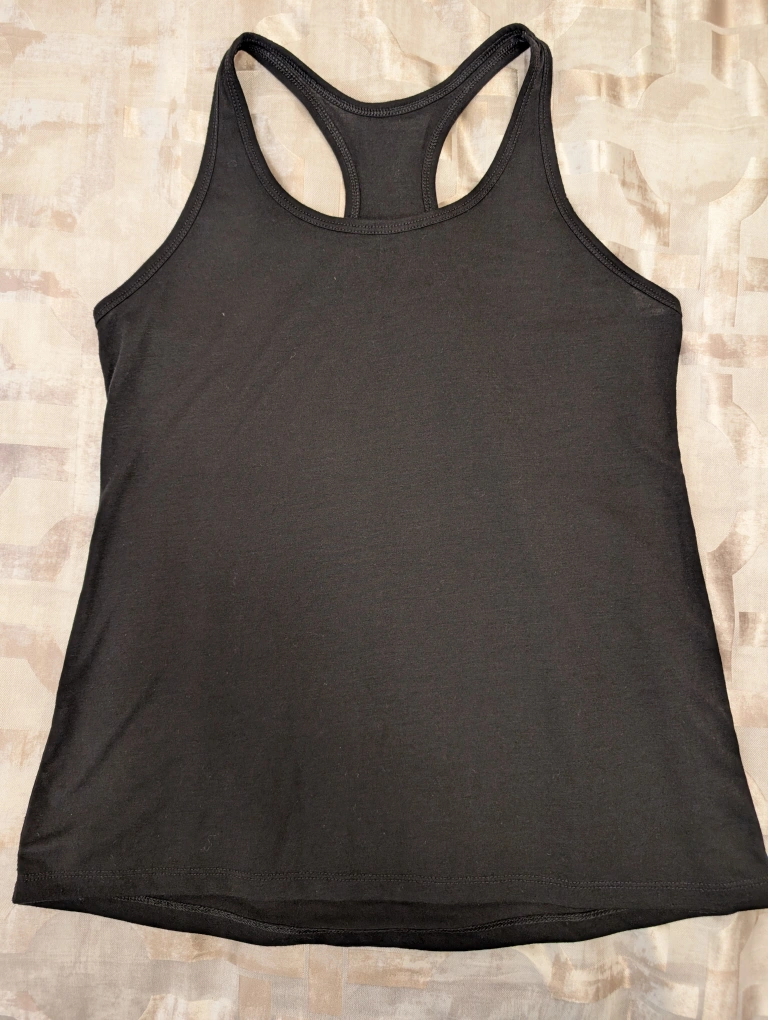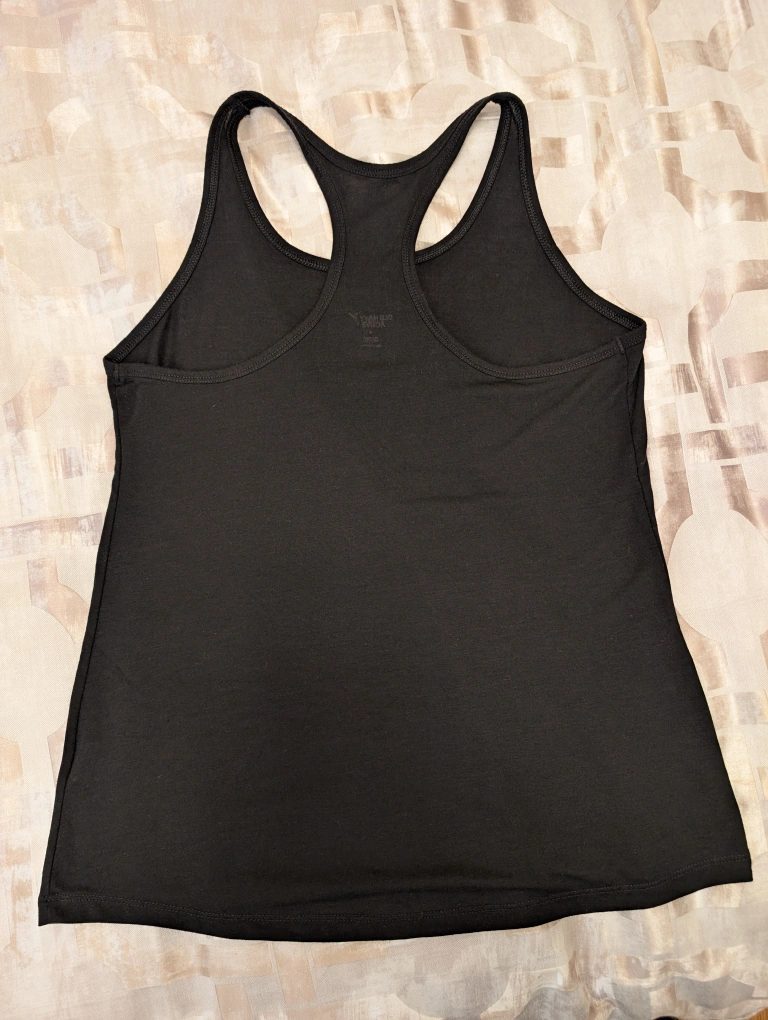 20A black tank top. Racerback style. A comfortable and practical addition to any wardrobe. This tank top is perfect for those relaxing weekend yoga sessions.