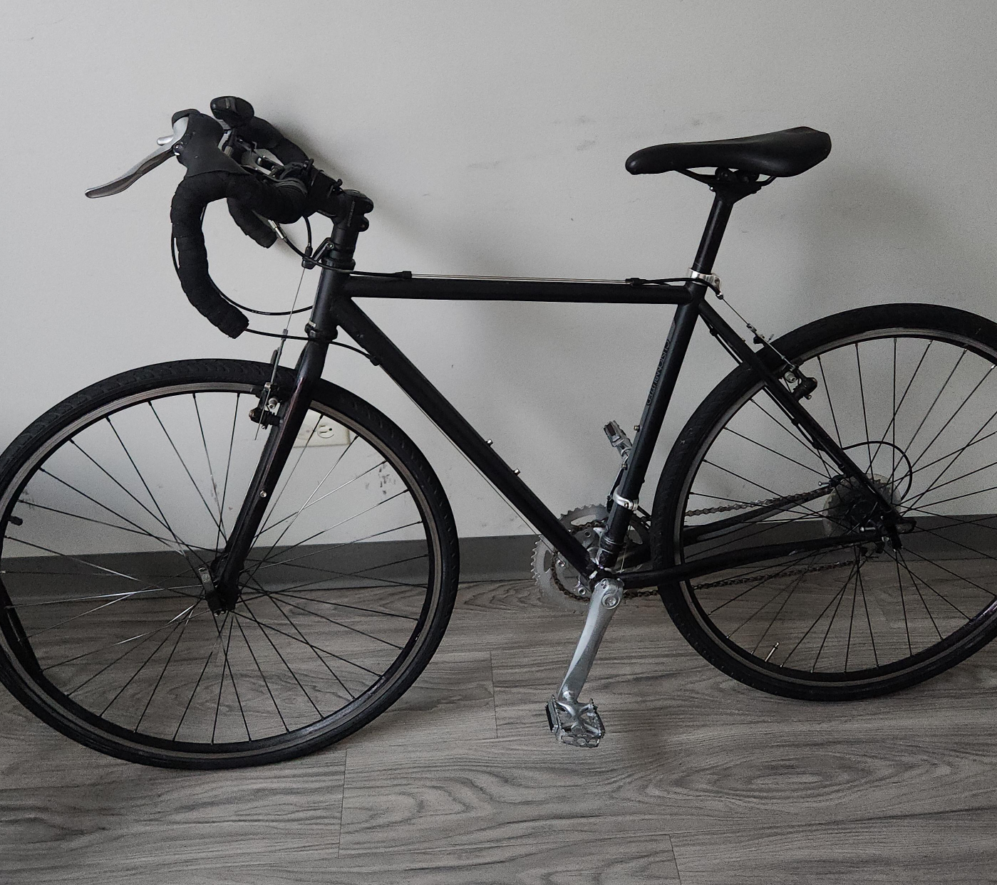 Selling a used road bike in black. It's in good condition and ready to ride! Perfect for getting around town or enjoying a leisurely ride