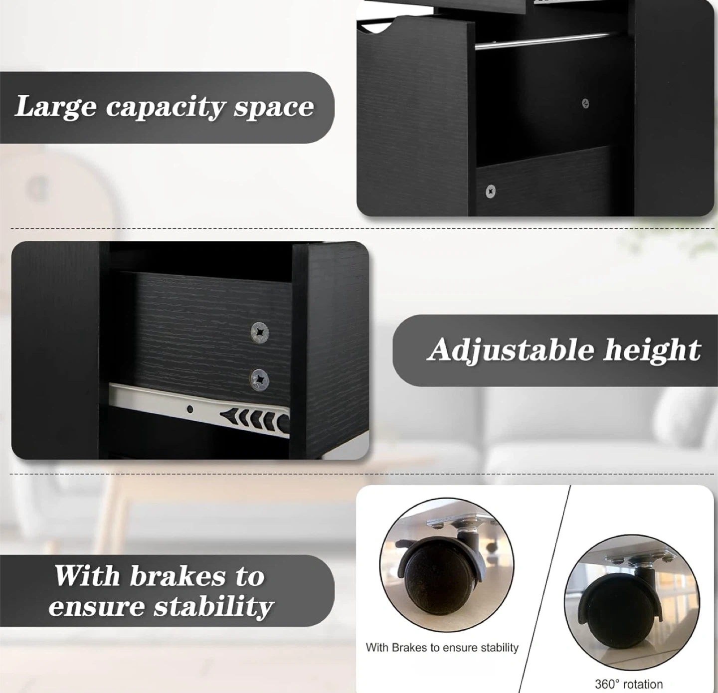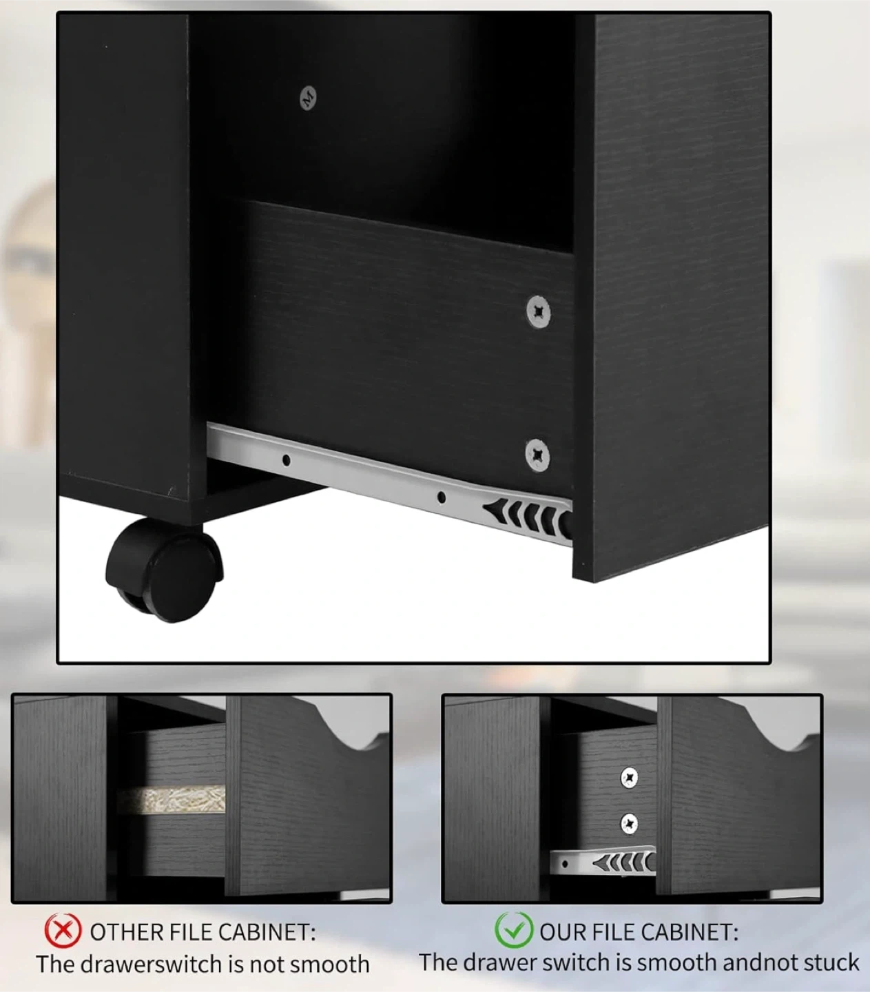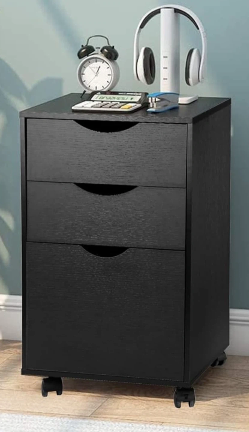 This black rolling file cabinet is perfect for keeping your documents organized! It features three drawers and smooth-rolling casters, making it easy to move around your workspace. The drawers are designed to hold A4 size documents. The dimensions are 24.02 inches (height) x 15.55 inches (width) x 15.55 inches (depth)