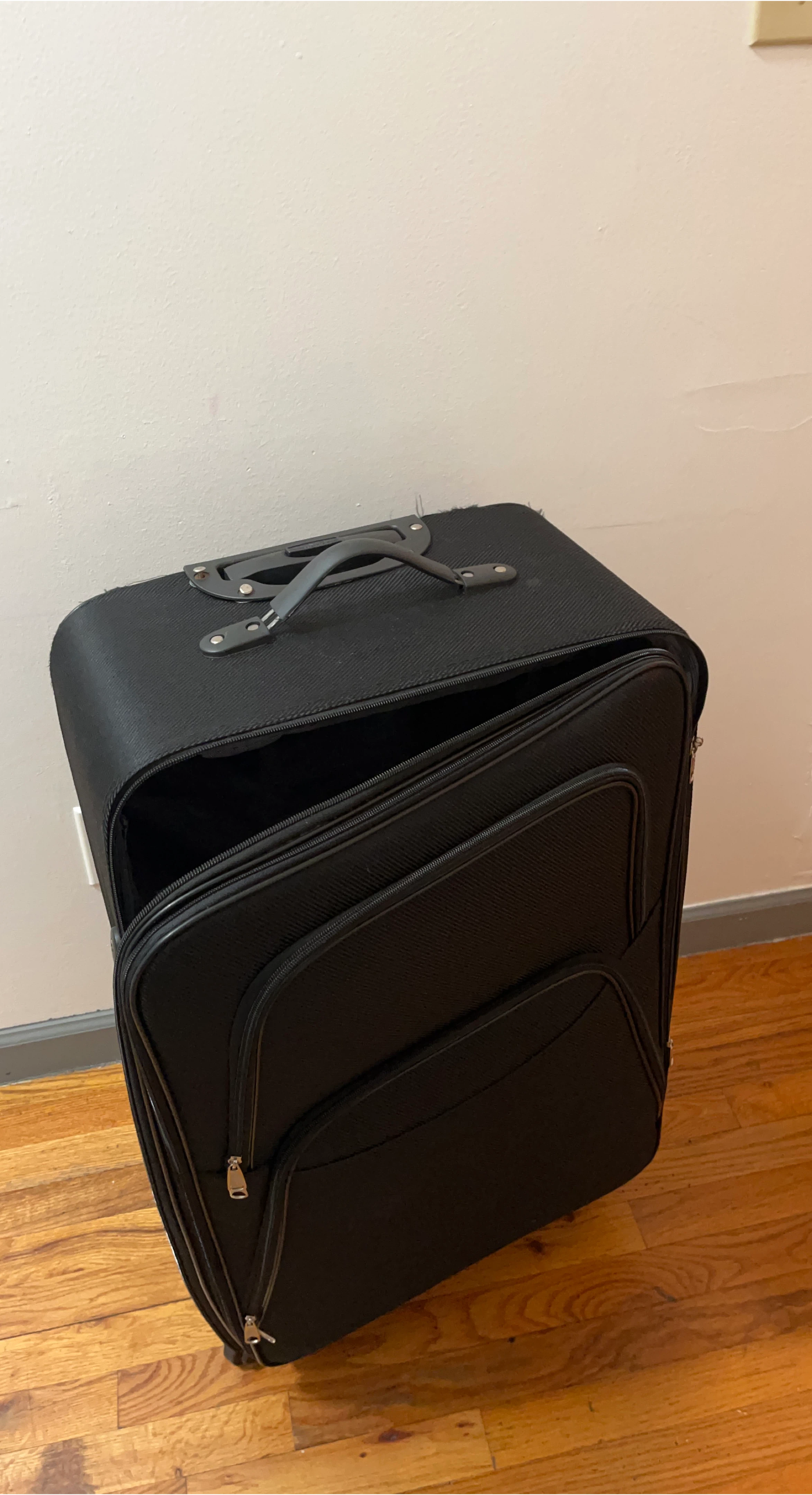 70Selling a black rolling suitcase. It has some signs of use, but is still functional. Great for travel!
