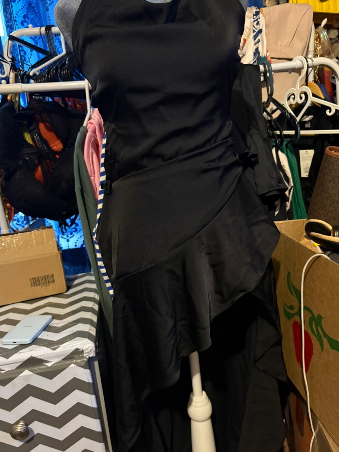 Selling a black dress with a ruffle detail. It's in great condition and ready for a new home!