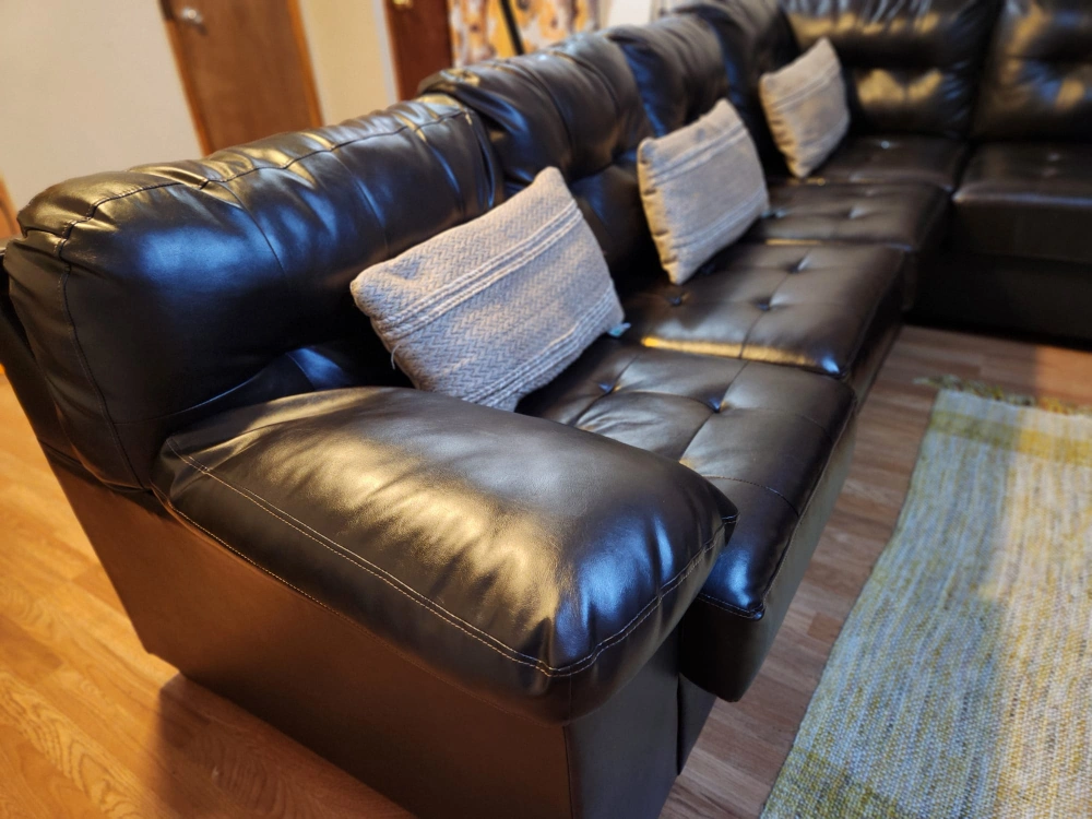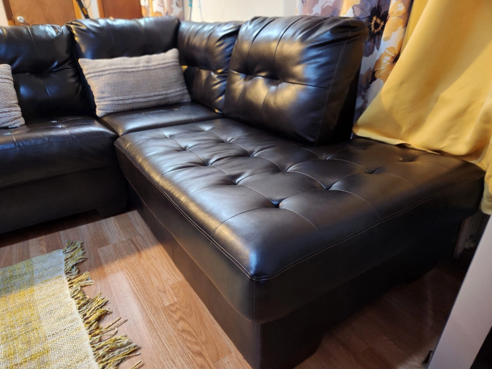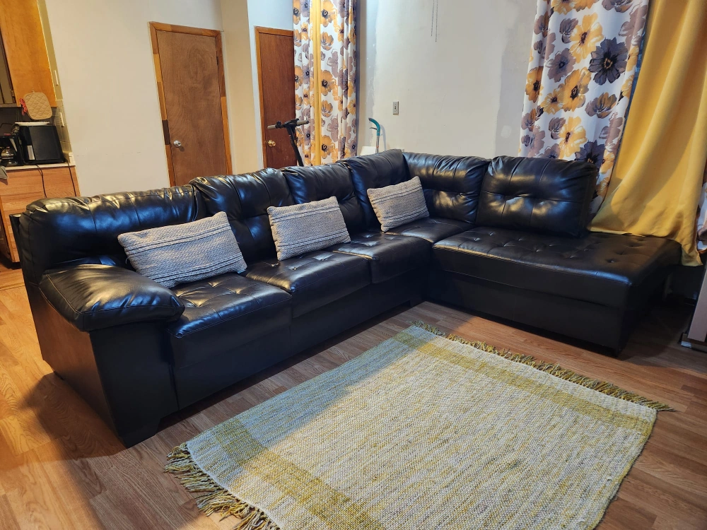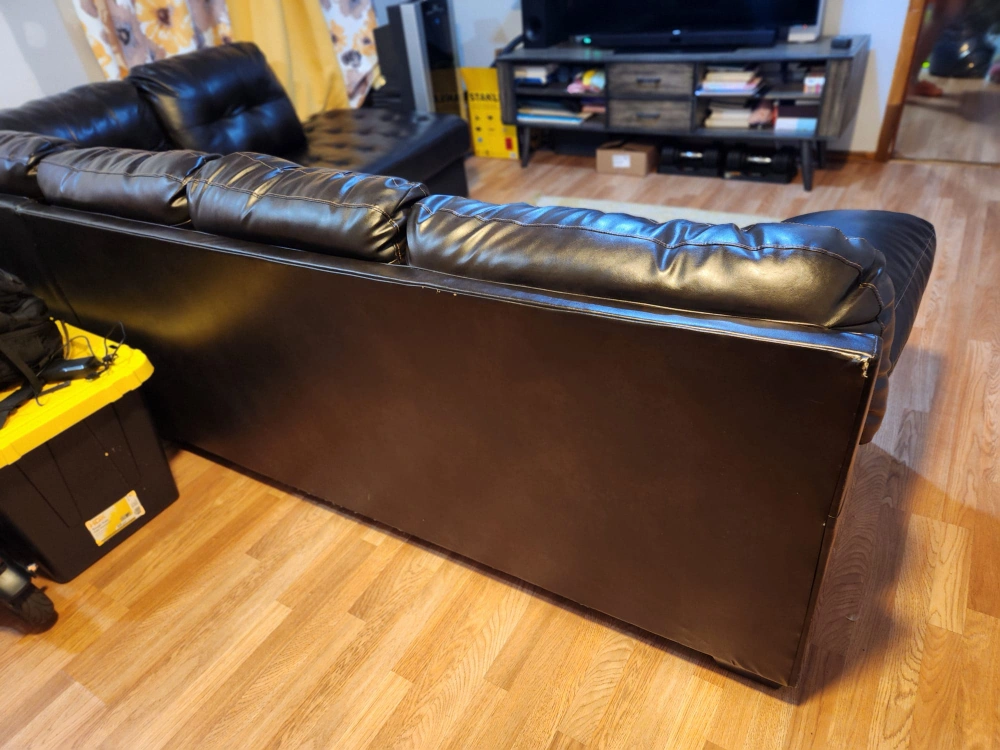 Sectional L shape left chaise couch. The item is almost like new except there is a rip in the back of the chaise. It was damaged during delivery when it was new. Other than that this couch is beautiful and extremely comfortable. Dimensions: 119" wide, 85" wide (chaise), 37" deep, 33" Height We are moving to a smaller space thus the reason why we're selling it. Must be taken by the end of the month. You'll need a box truck or a pick up truck. If its up for sale, its available.