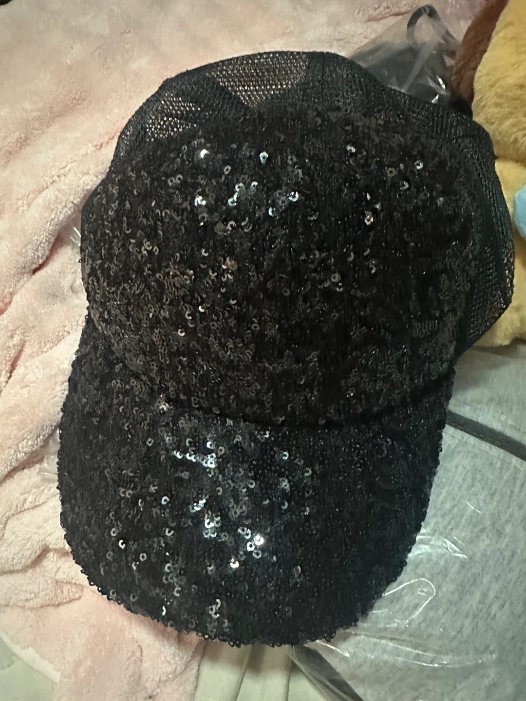 151Here's a fun black baseball cap covered in sequins! It's perfect for adding a little sparkle to any outfit. The cap is in great condition and ready for a new home