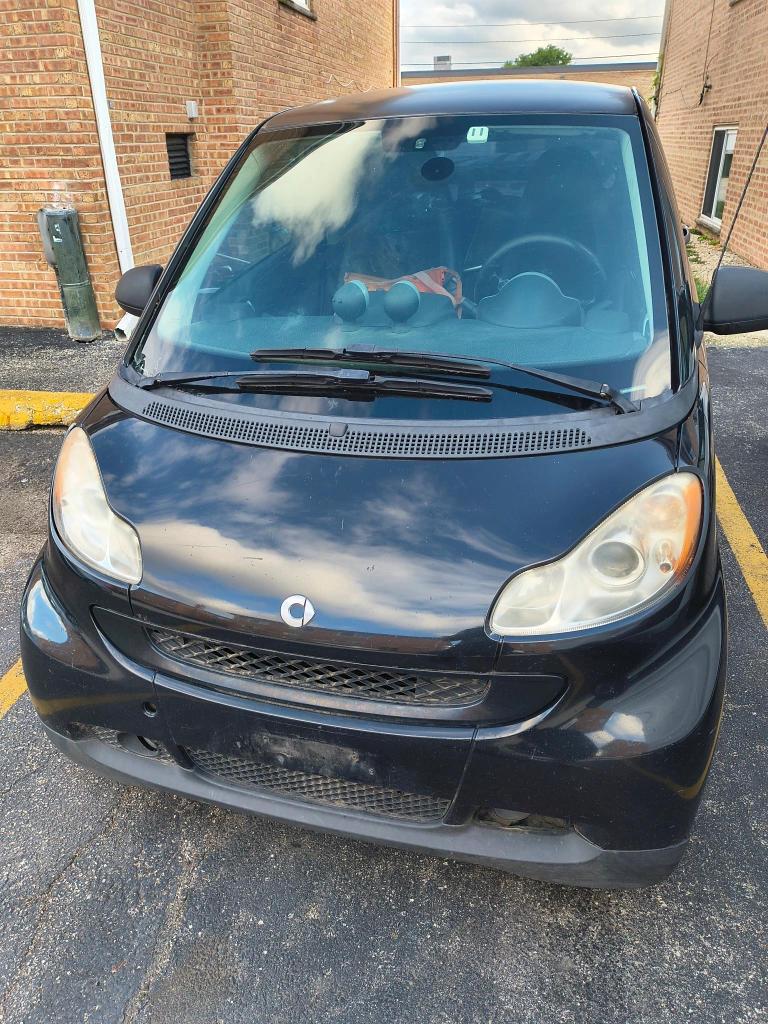 Selling a black Smart car. It has some wear and tear, but is in good condition overall. Perfect for city driving!