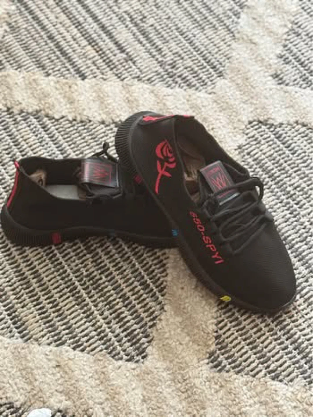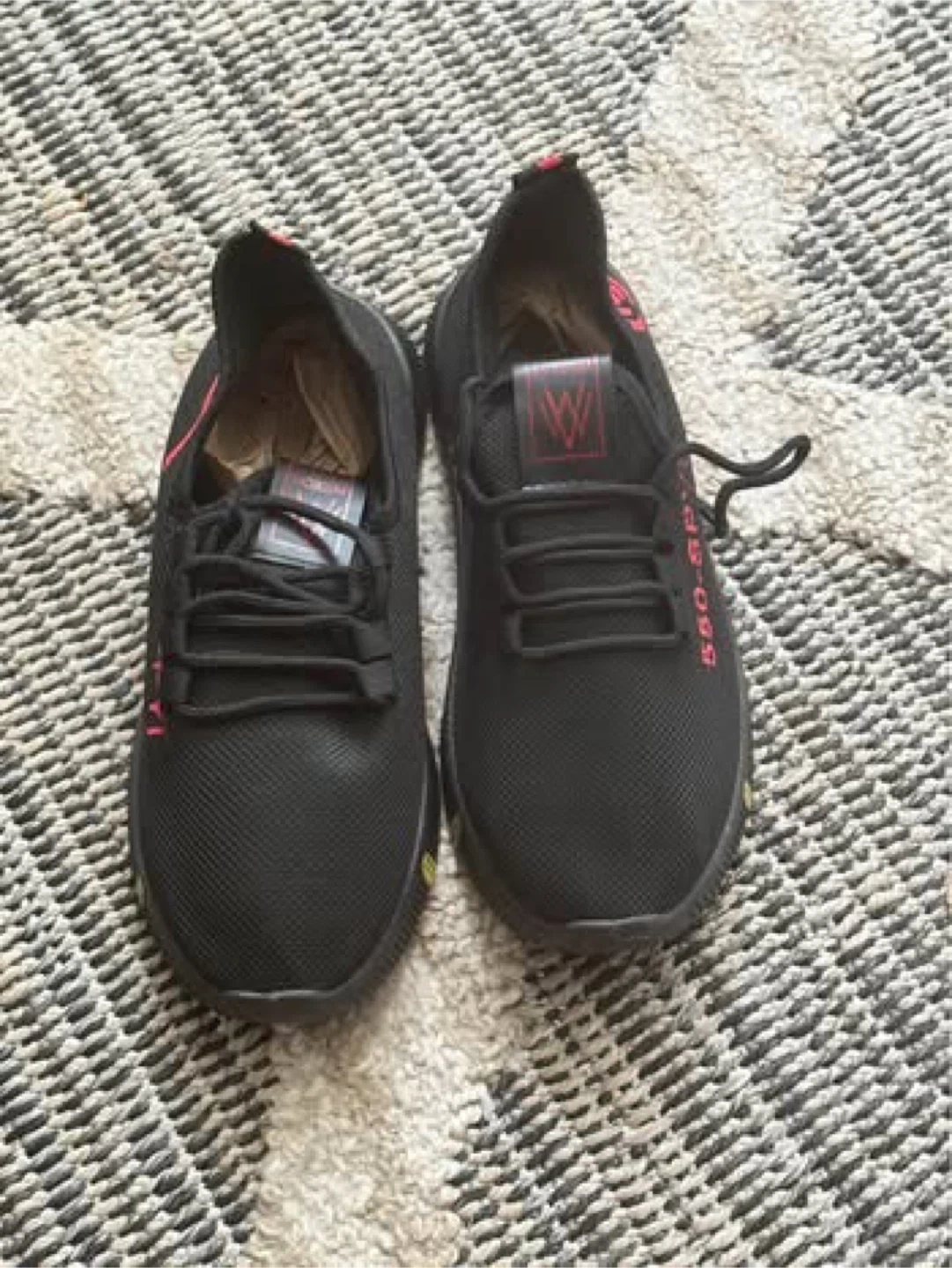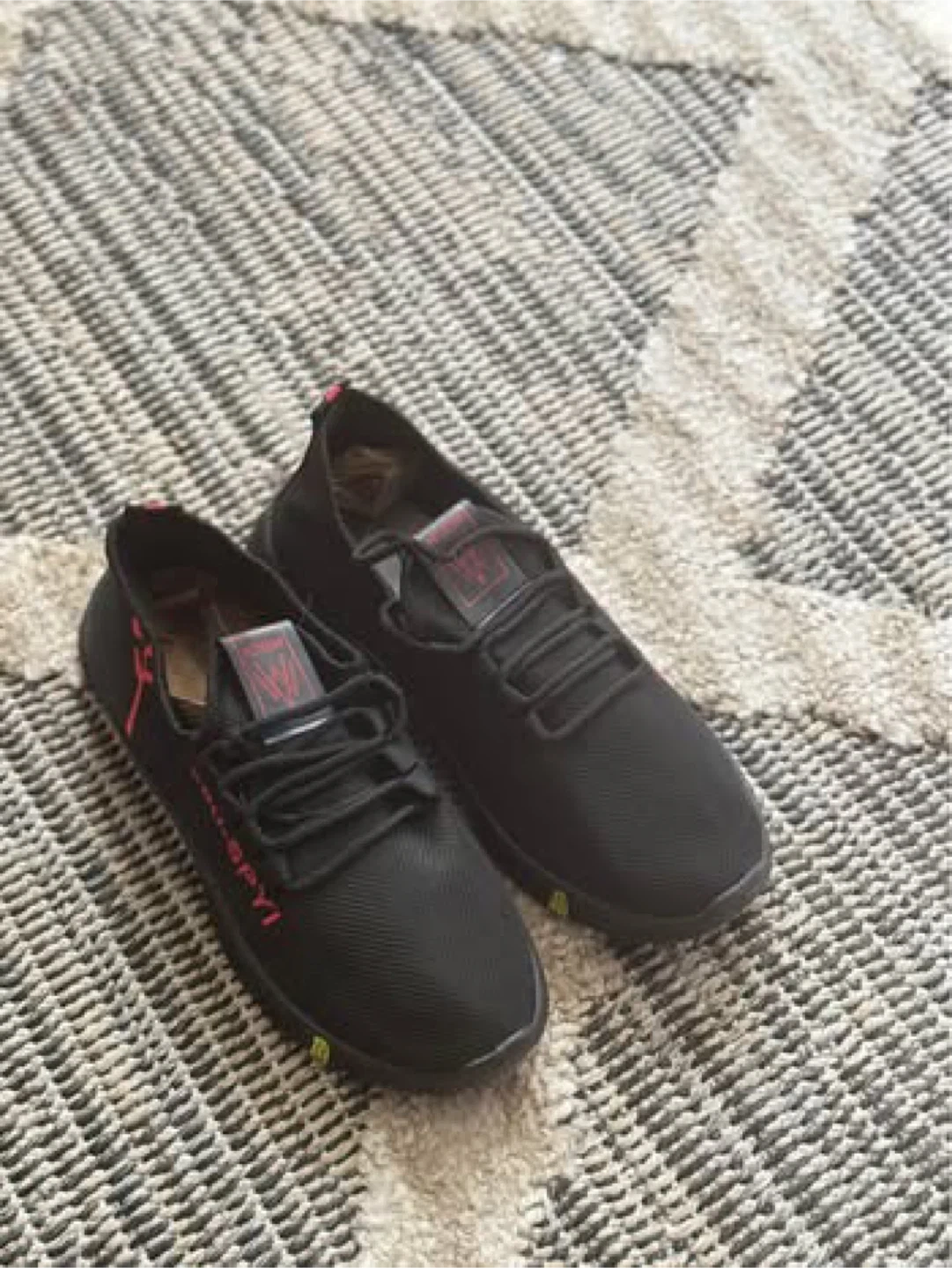 103Selling a pair of black sneakers in EU size 40. They have a unique design with colorful accents on the sole and a rose design on the side. Great for everyday wear!