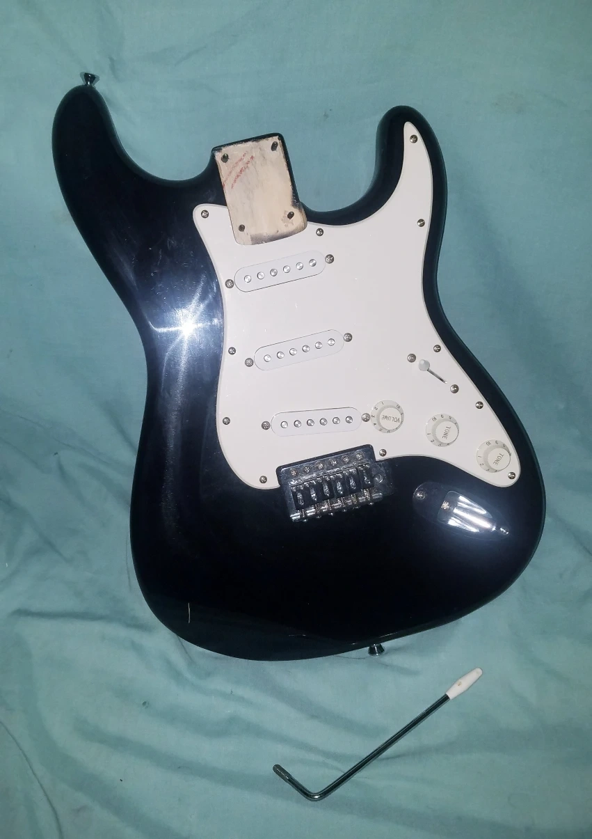 76From a Barely Ever Played Beginner In Excellent Clean Pre-Owned Condition ( Has a Small Ding on the Upper Bout ) Pots May or May Not Need Cleaning Comes with the Squire Neck Plate and Whammy Please. See Pics... Check Out My Page For More Great Items Shipping Available on eBay ( Copy and Paste the Exact Title or Contact Me for the Item # )