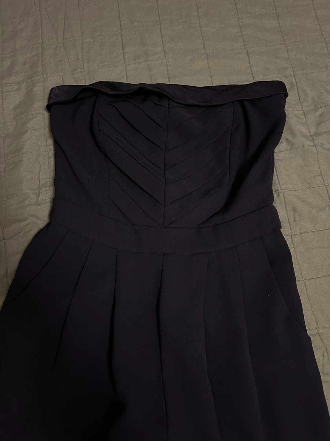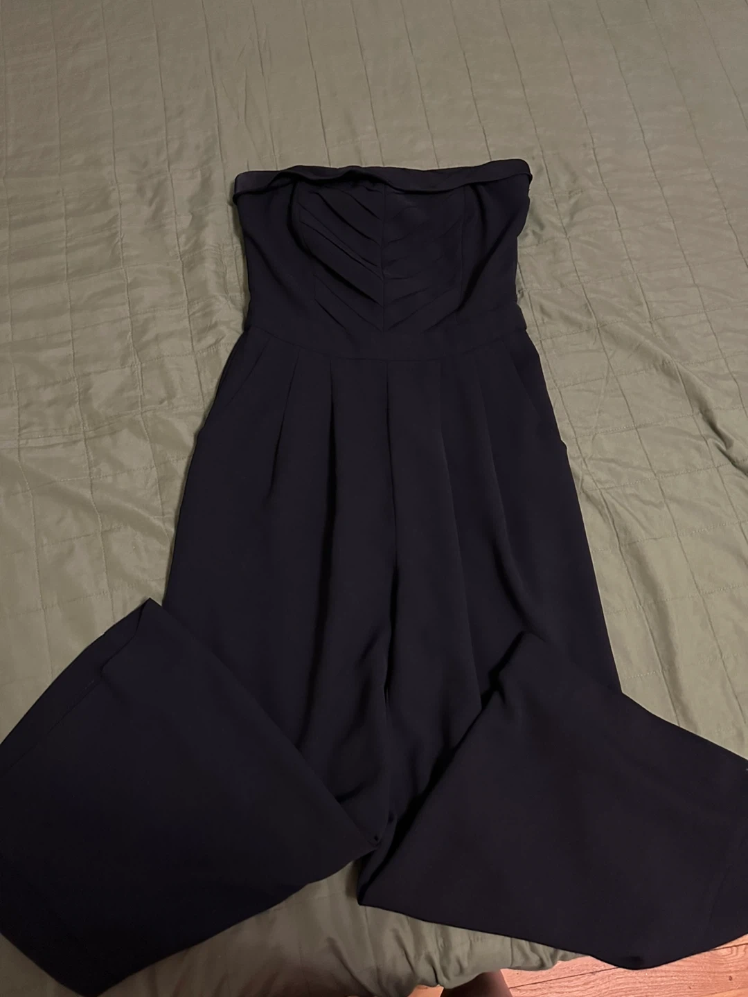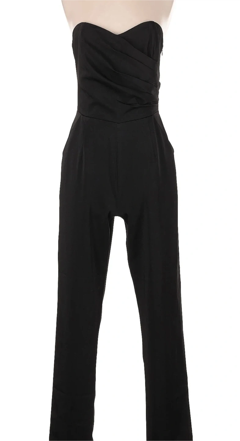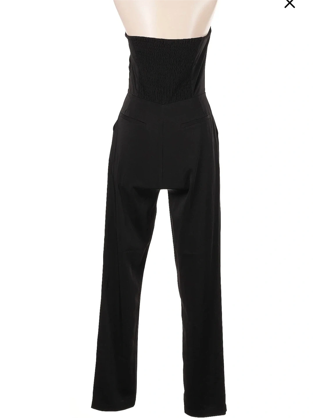 65Selling a stylish black strapless jumpsuit. It's in great condition and ready for a new home! Perfect for dressing up or down, this jumpsuit is a versatile addition to any wardrobe