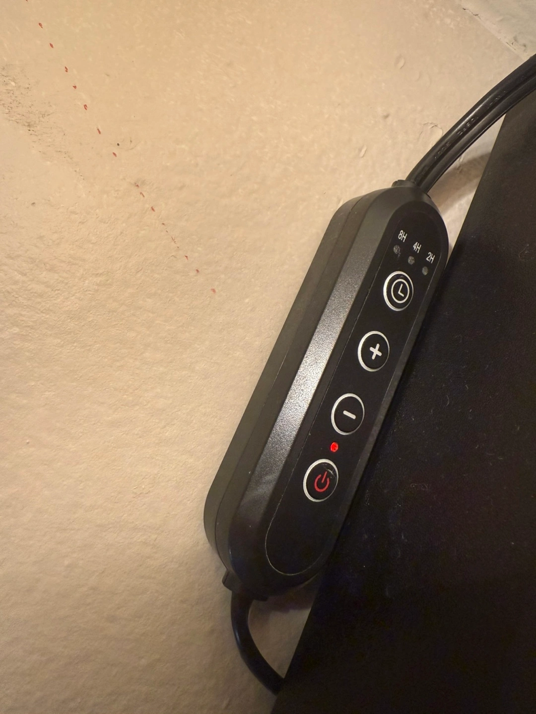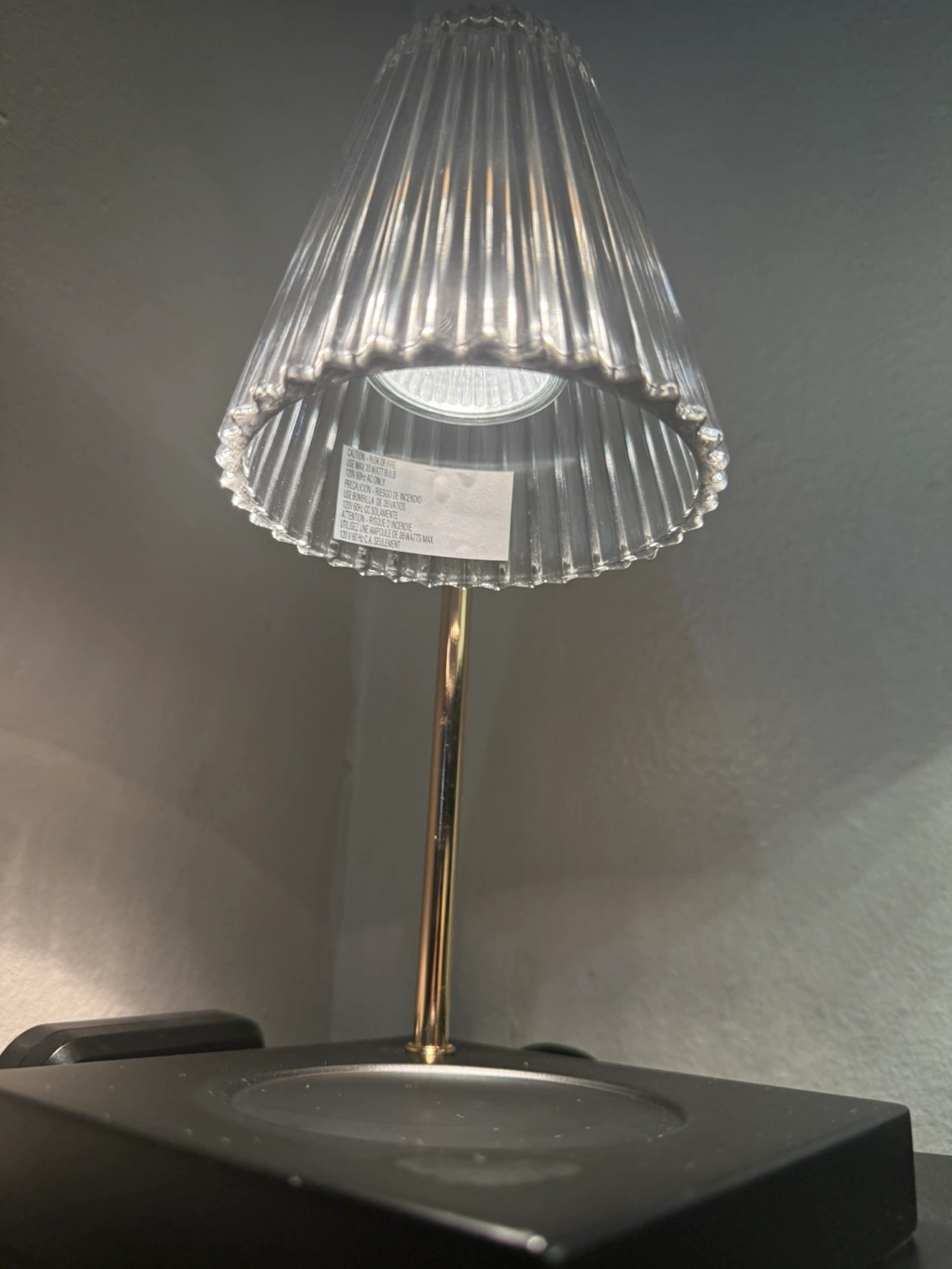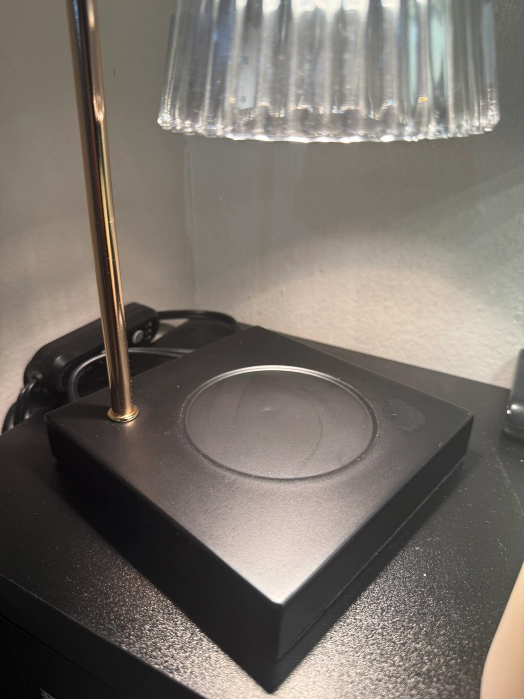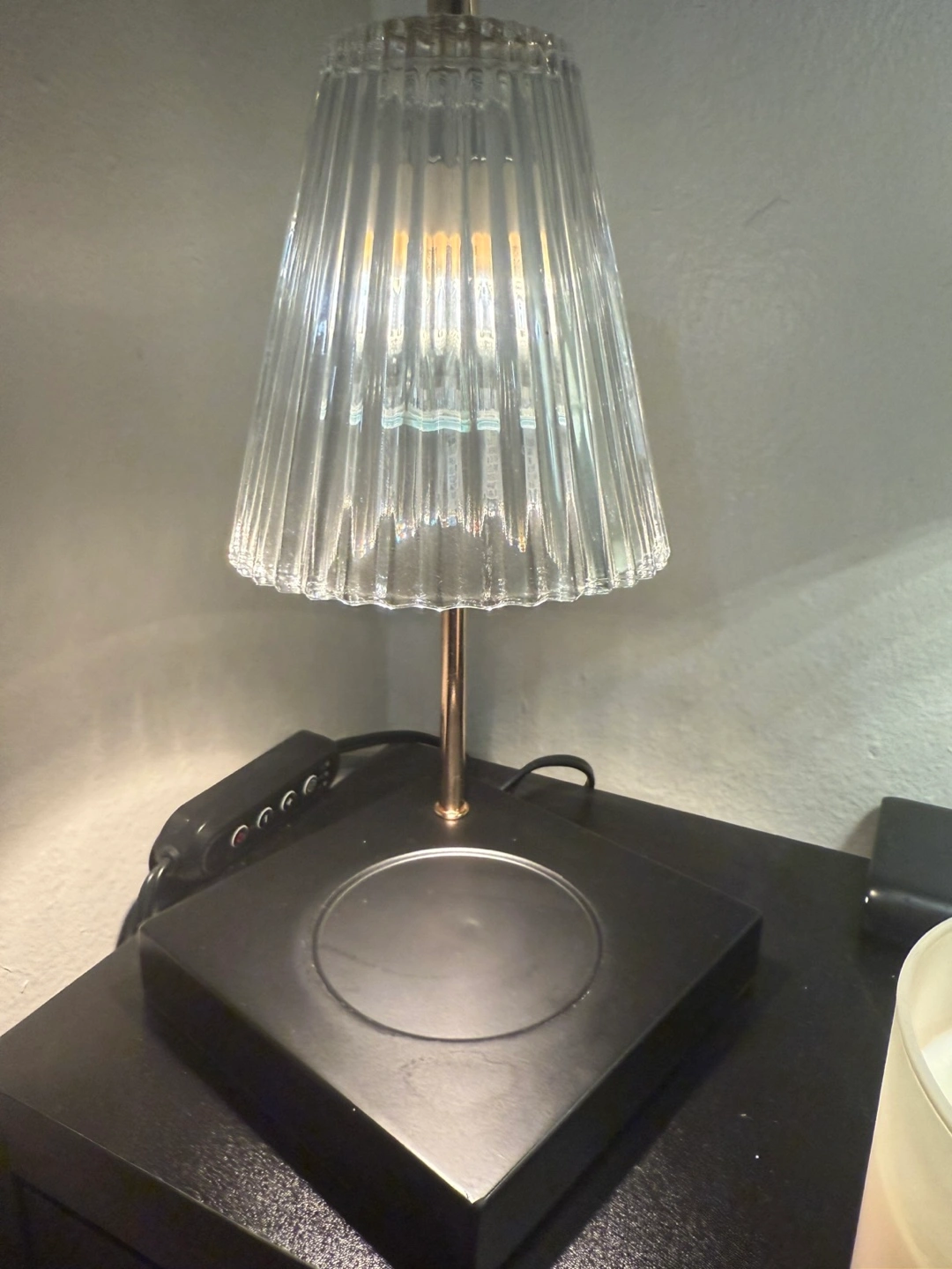 This is a stylish black table lamp that also functions as a warmer! It has a sleek design and would look great on a bedside table or desk. The warmer function is perfect for keeping your coffee or tea warm while you work or relax. It has an adjustable timer with settings for 2H, 4H, and 8H