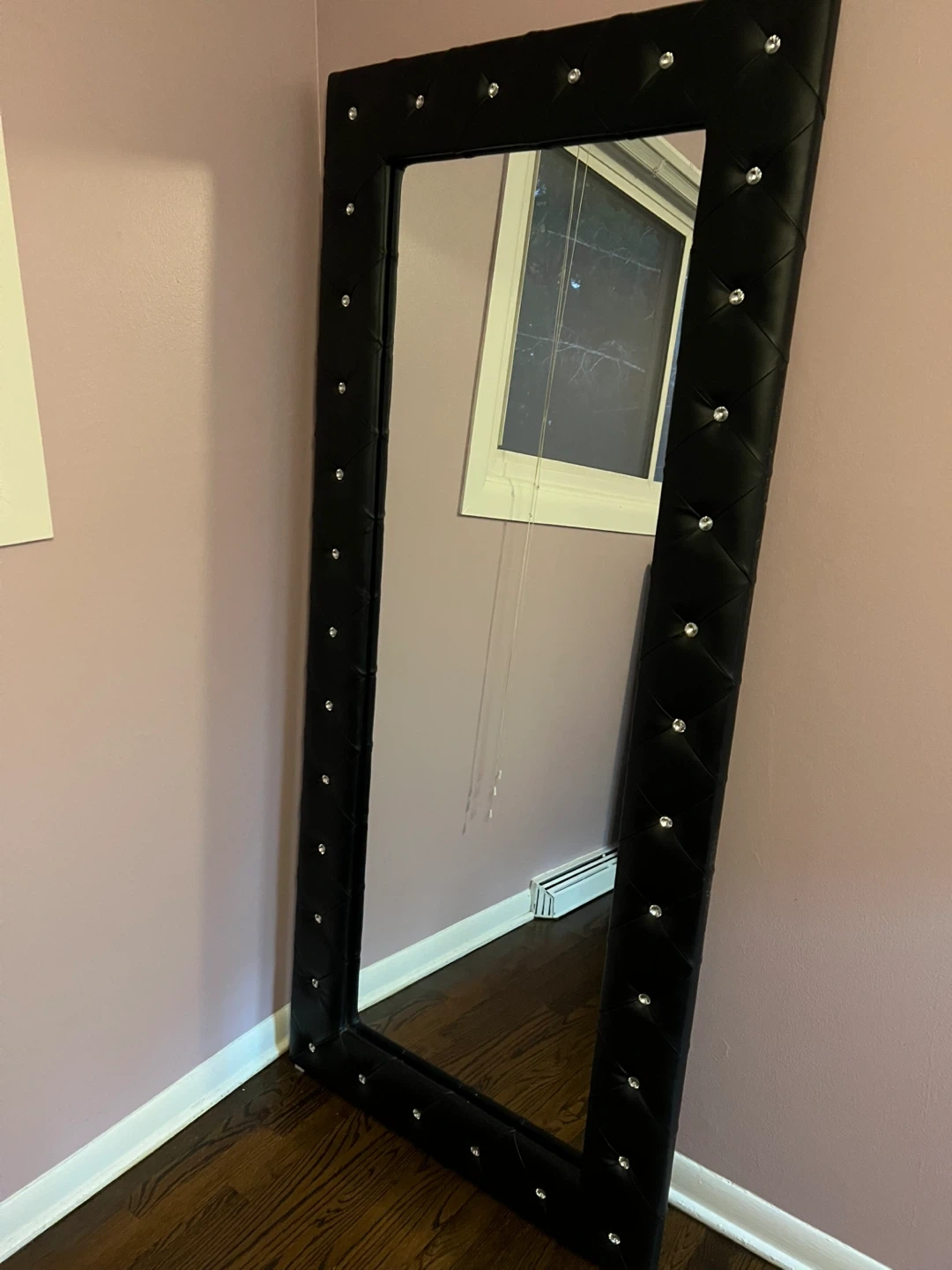 0Selling a stylish black tufted full-length mirror and a matching bed frame! Both are in great condition and would add a touch of elegance to any room. Free matching side table included