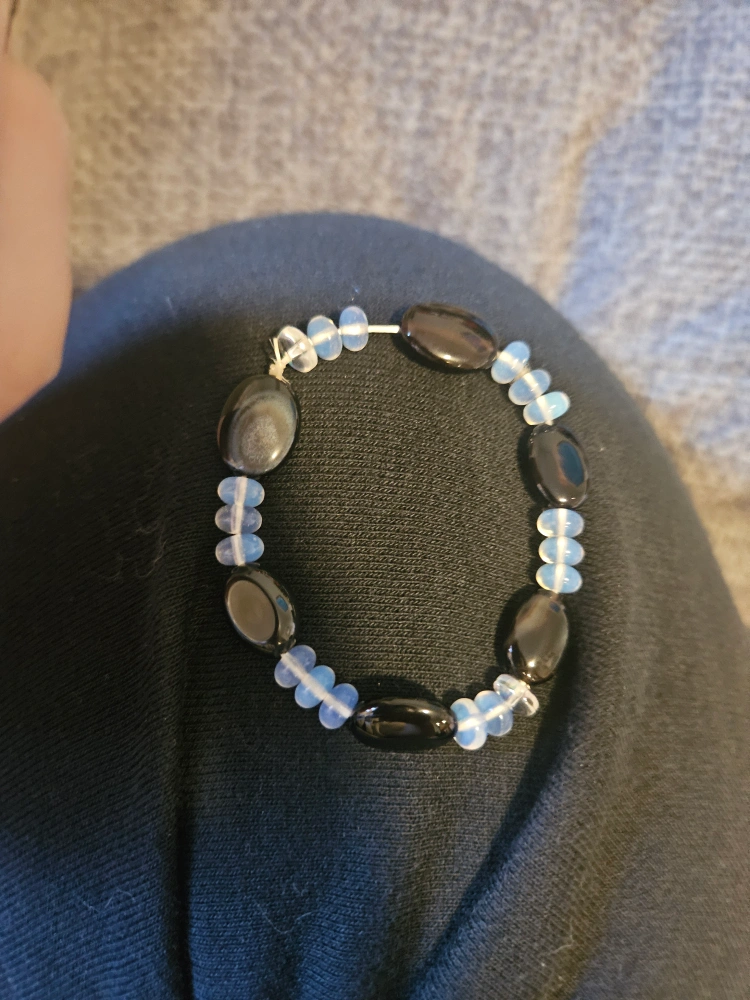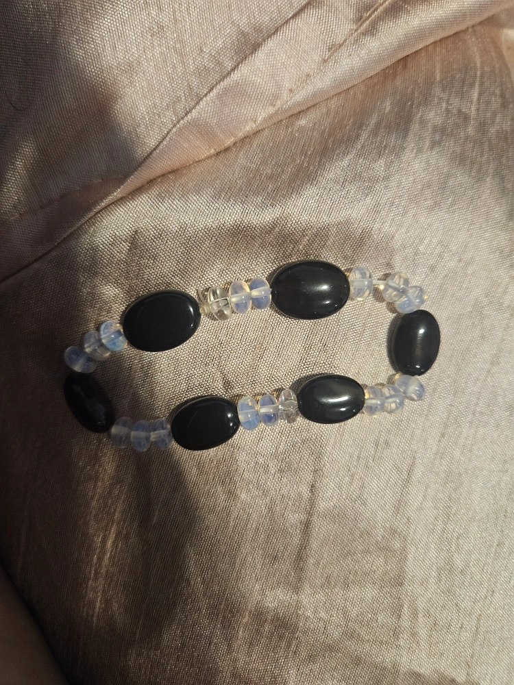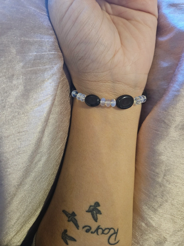 5Here's a pretty beaded bracelet with black and white beads! It's a simple and elegant accessory that can be dressed up or down