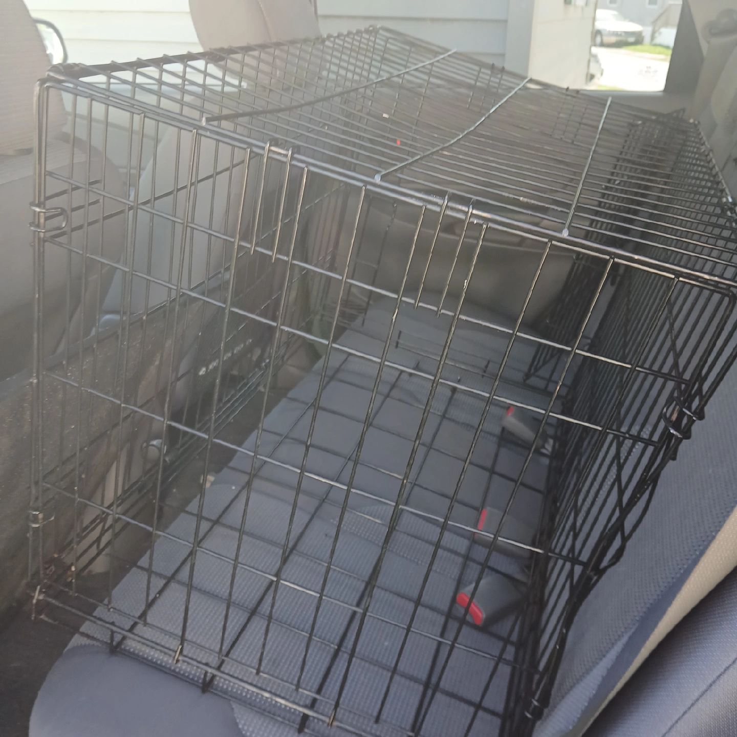 Selling a black wire dog crate! It's in good condition with a few bends and ready for a new home. Perfect for training or providing a safe space for your furry friend