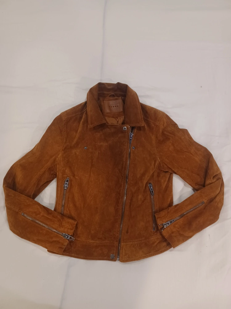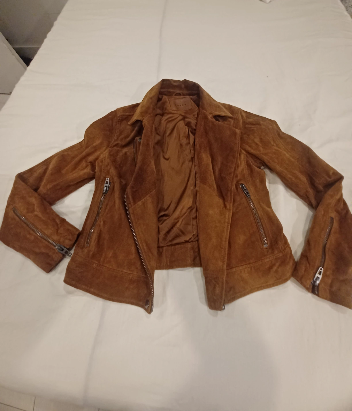 Vendo una chaqueta motera de ante Blank NYC talla M. Es elegante y cómoda, perfecta para darle un toque atrevido a cualquier look. Está en buen estado y lista para estrenar.