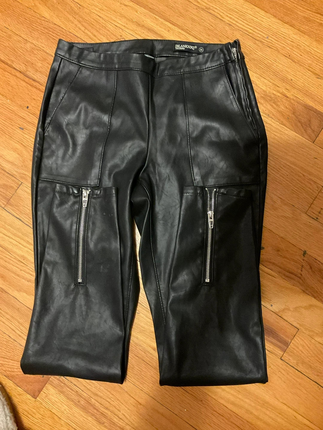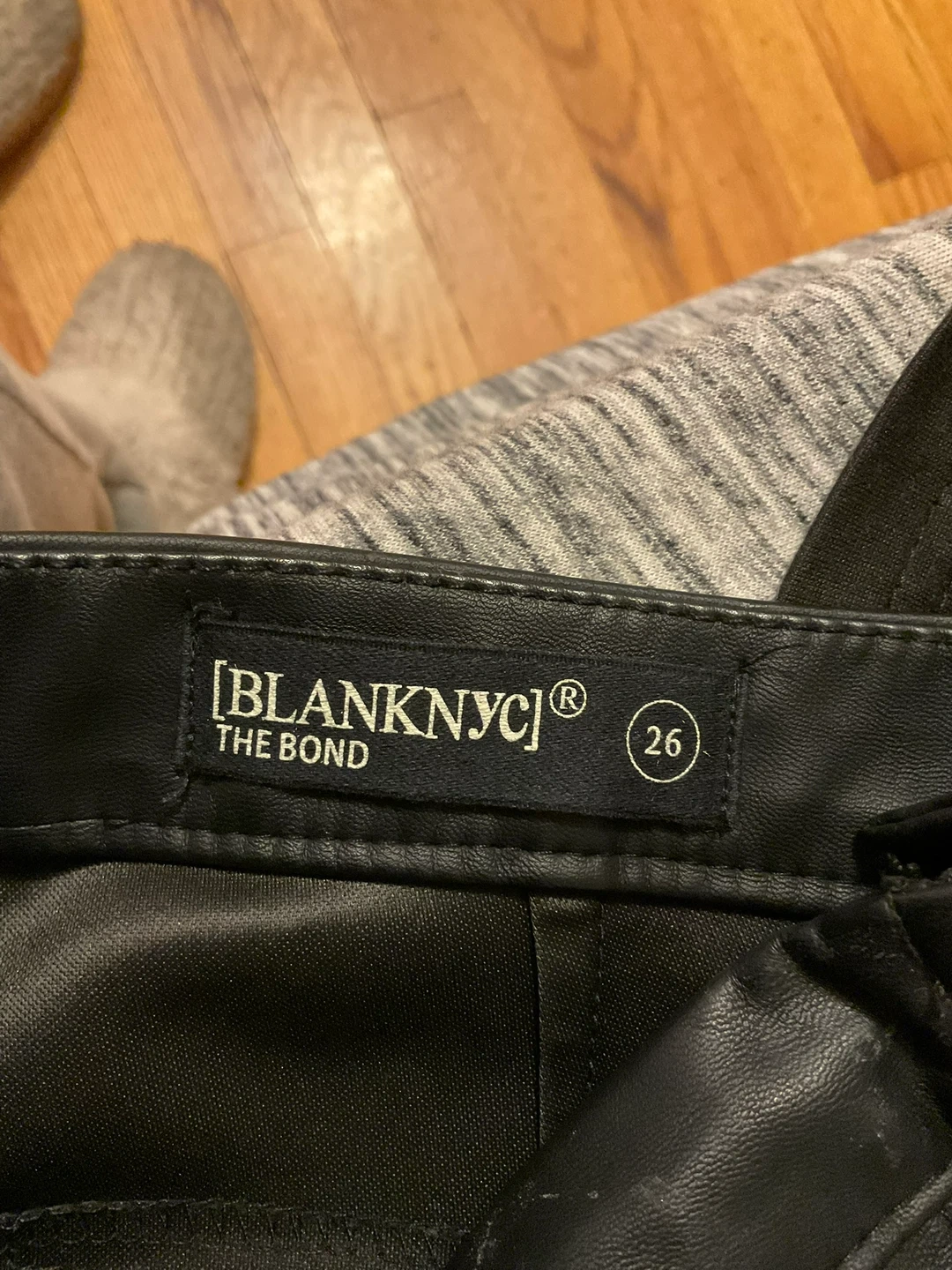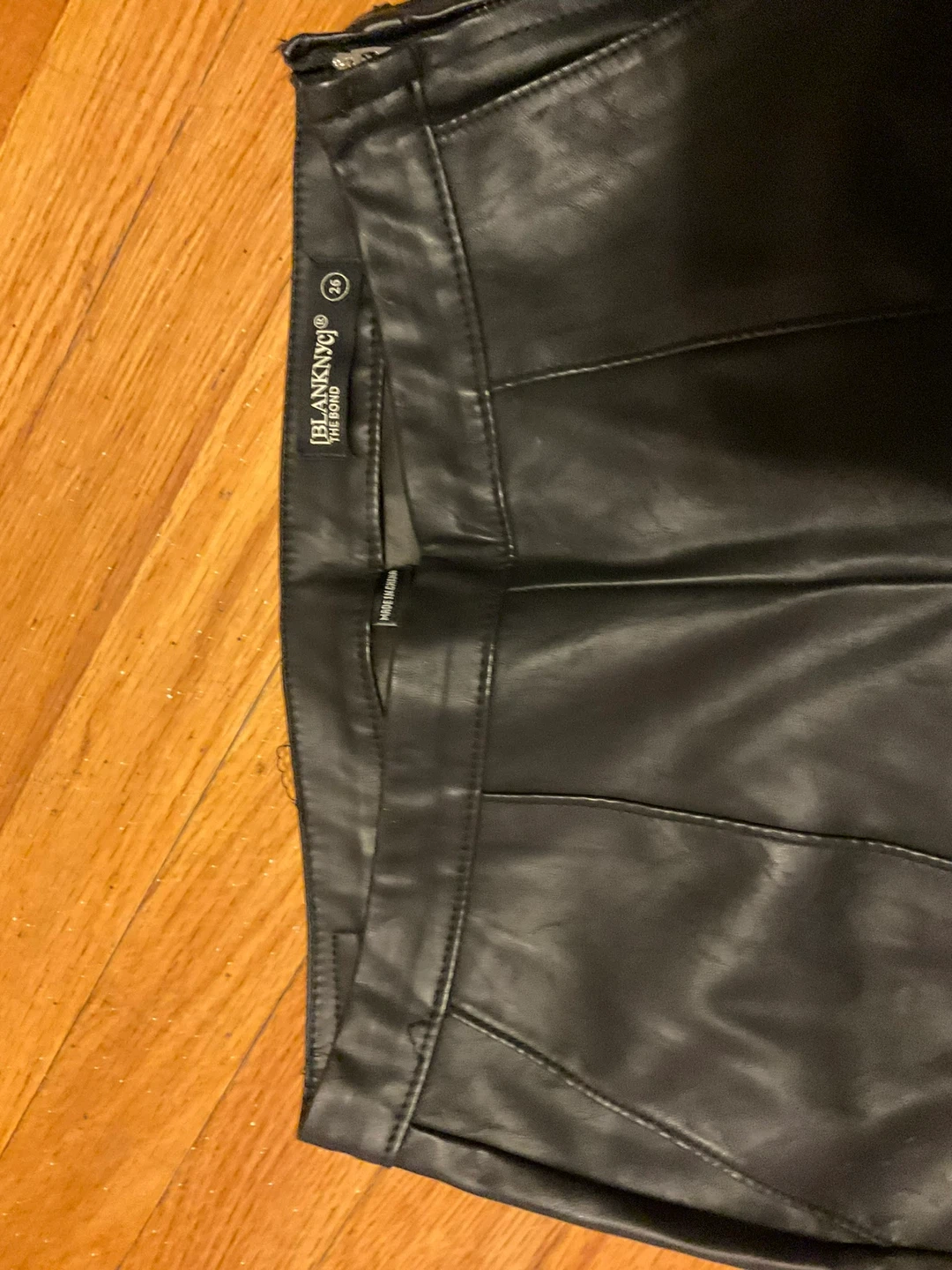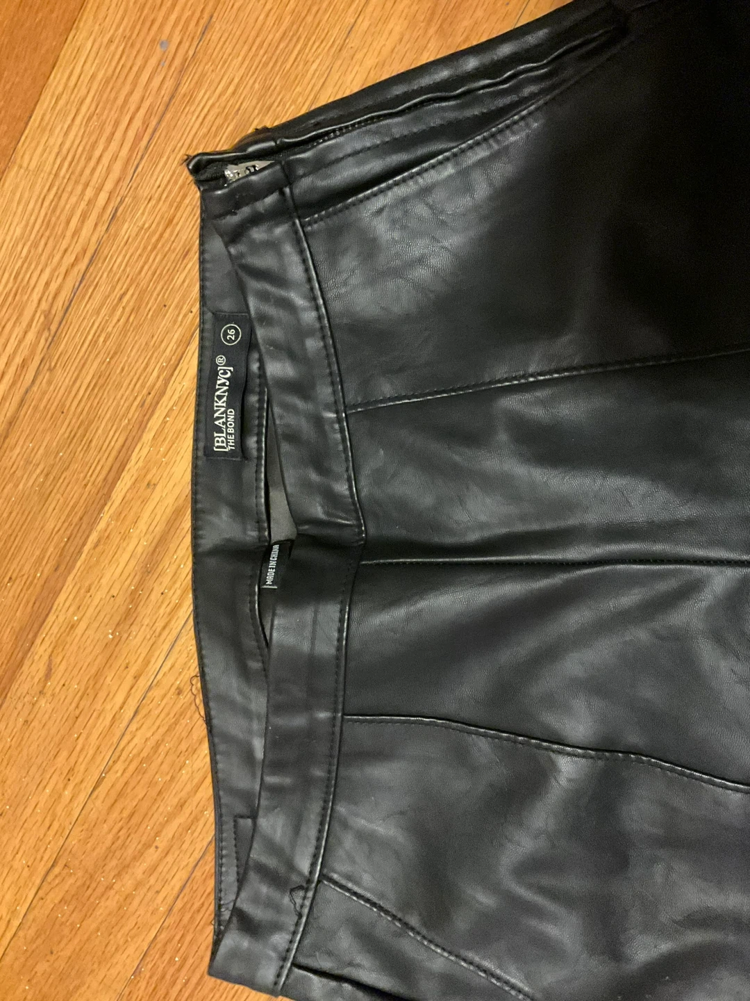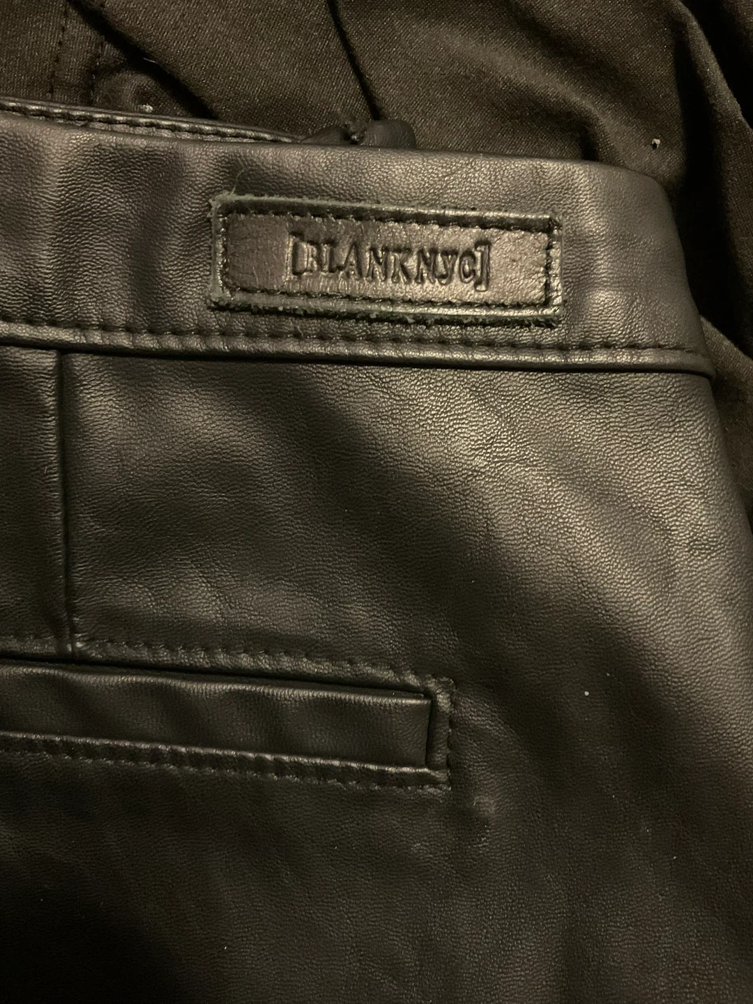 Selling a pair of [BLANKNYC] vegan leather pants in size 26! Like new used 1x These stylish pants are black and feature a sleek, modern design. Perfect for adding a touch of edgy sophistication to your wardrobe