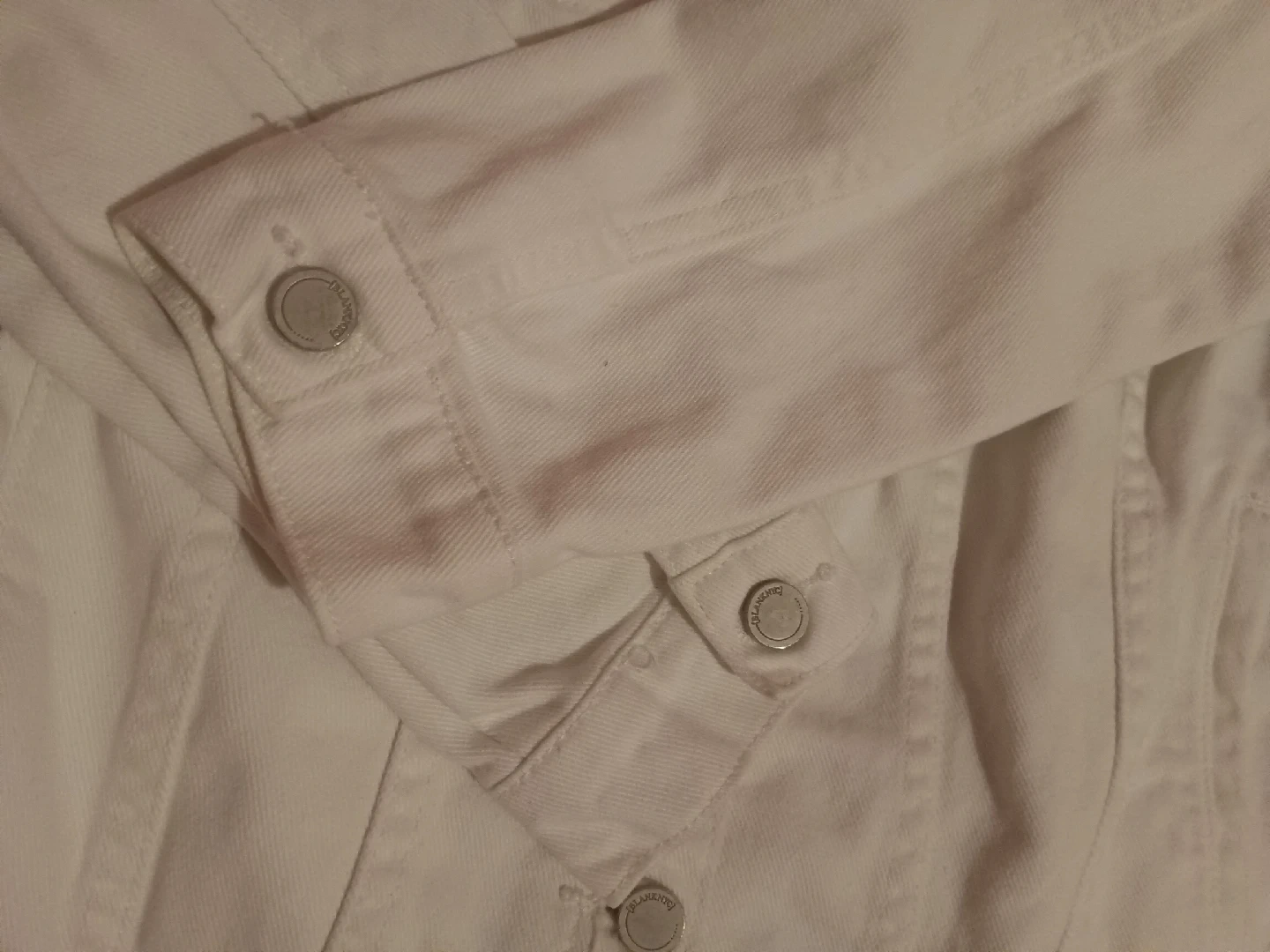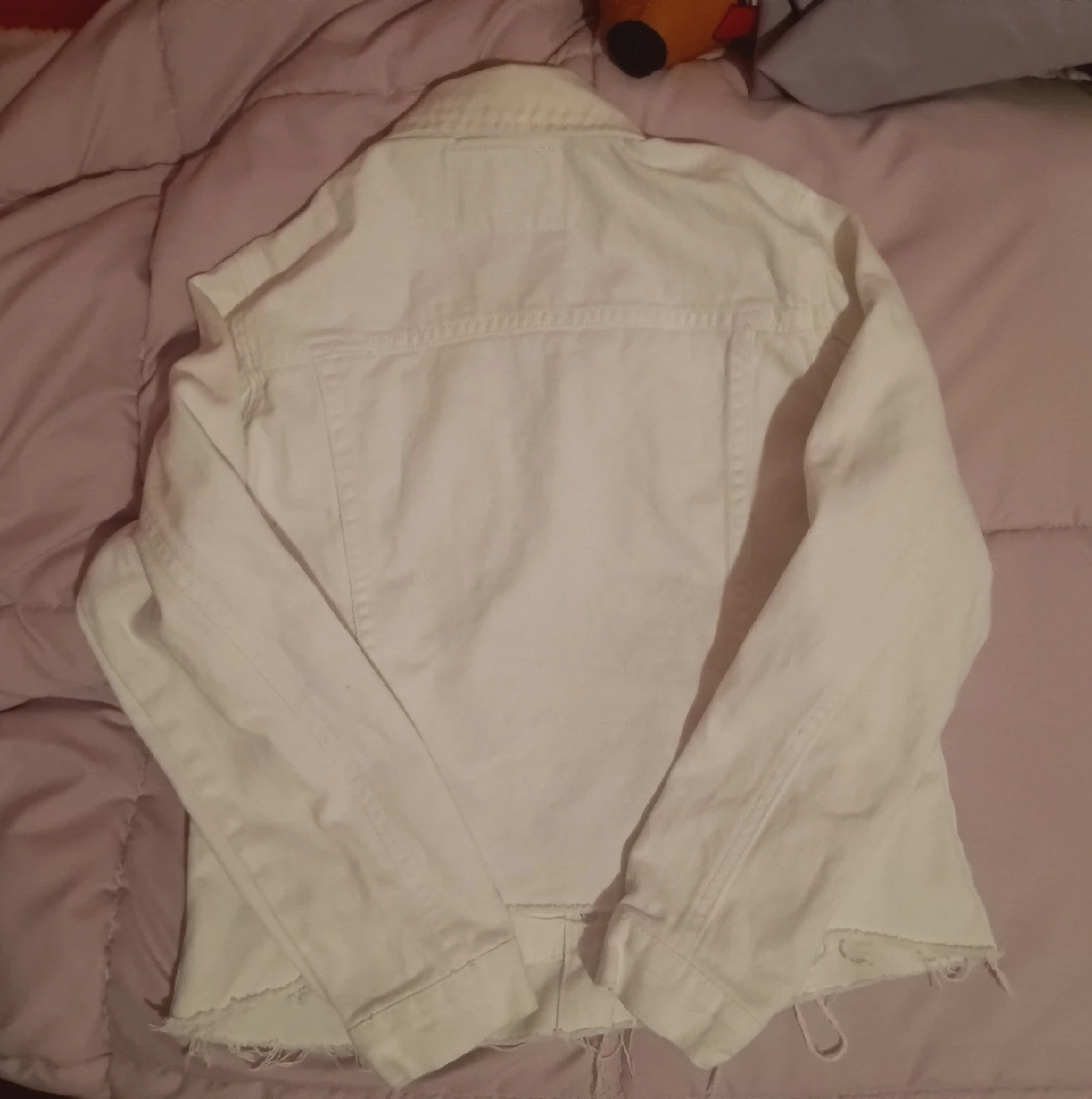15Selling a [BLANKNYC] white denim jacket in size XL. It's a stylish piece with a classic look! Local pick-up (dm for meet up spot)