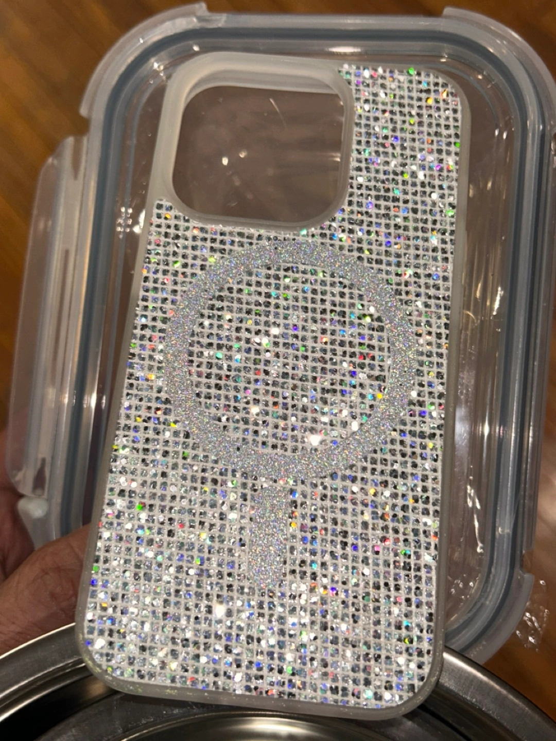 256Rhinestone and glitter phone case. MagSafe compatible. For iPhone 12 Pro Max. Protective clear case included.