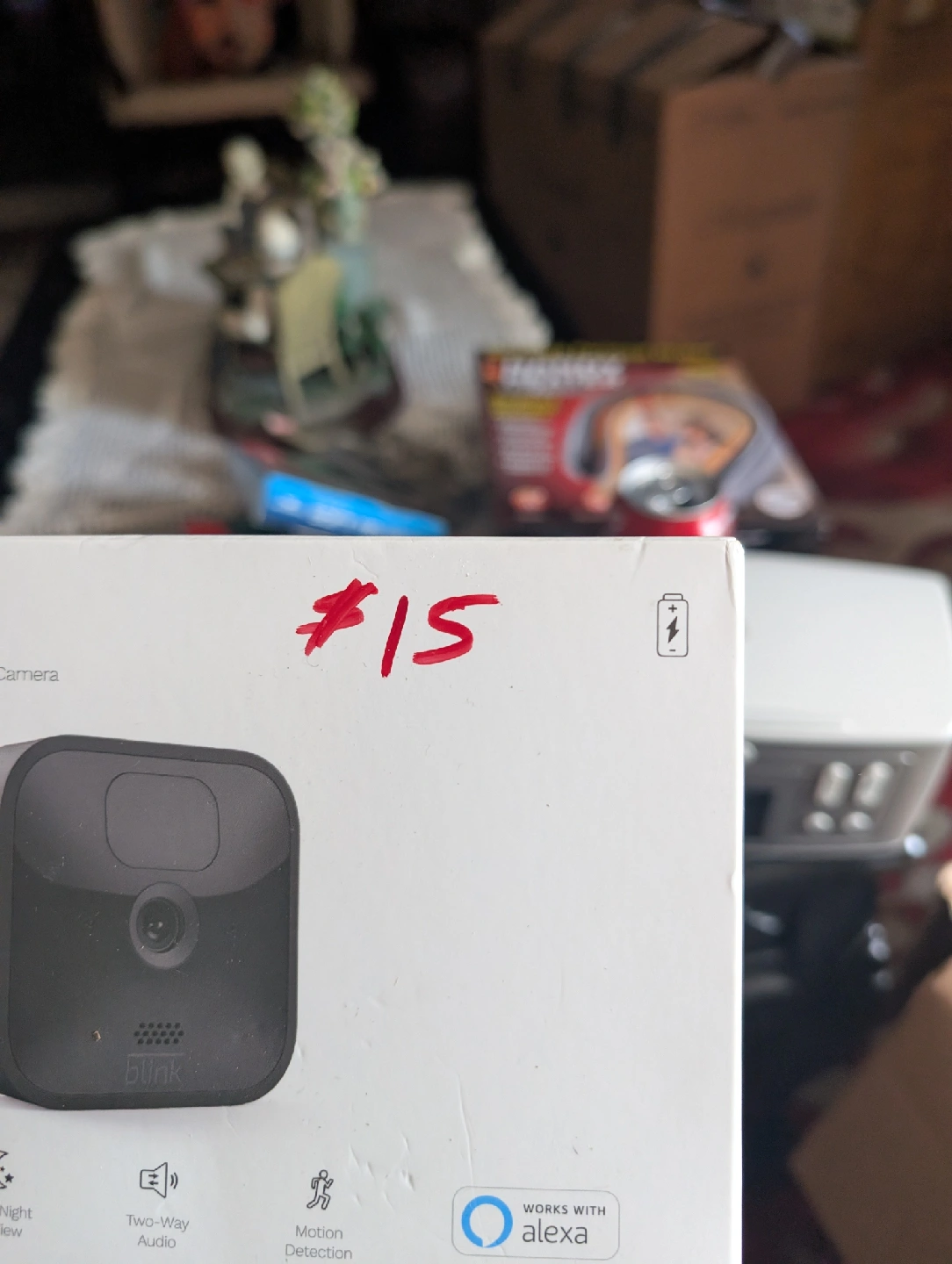 Selling a used Blink Camera still in its original box! It features night view, two-way audio, and motion detection. Works with Alexa