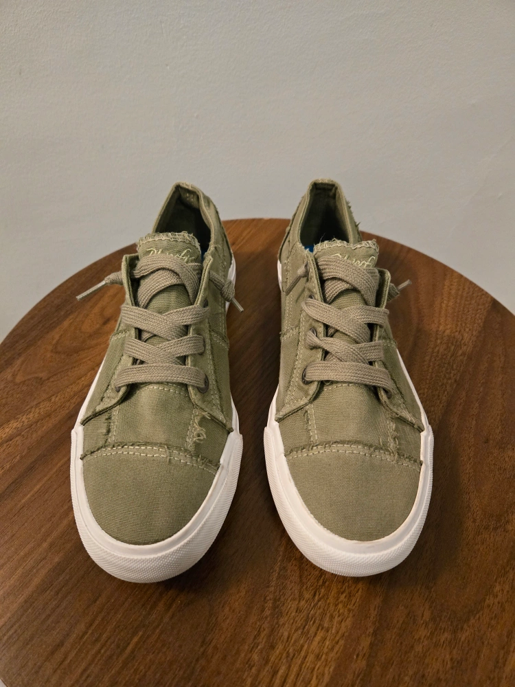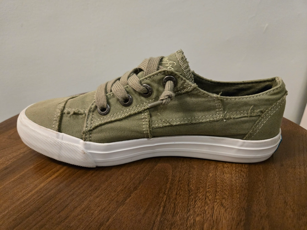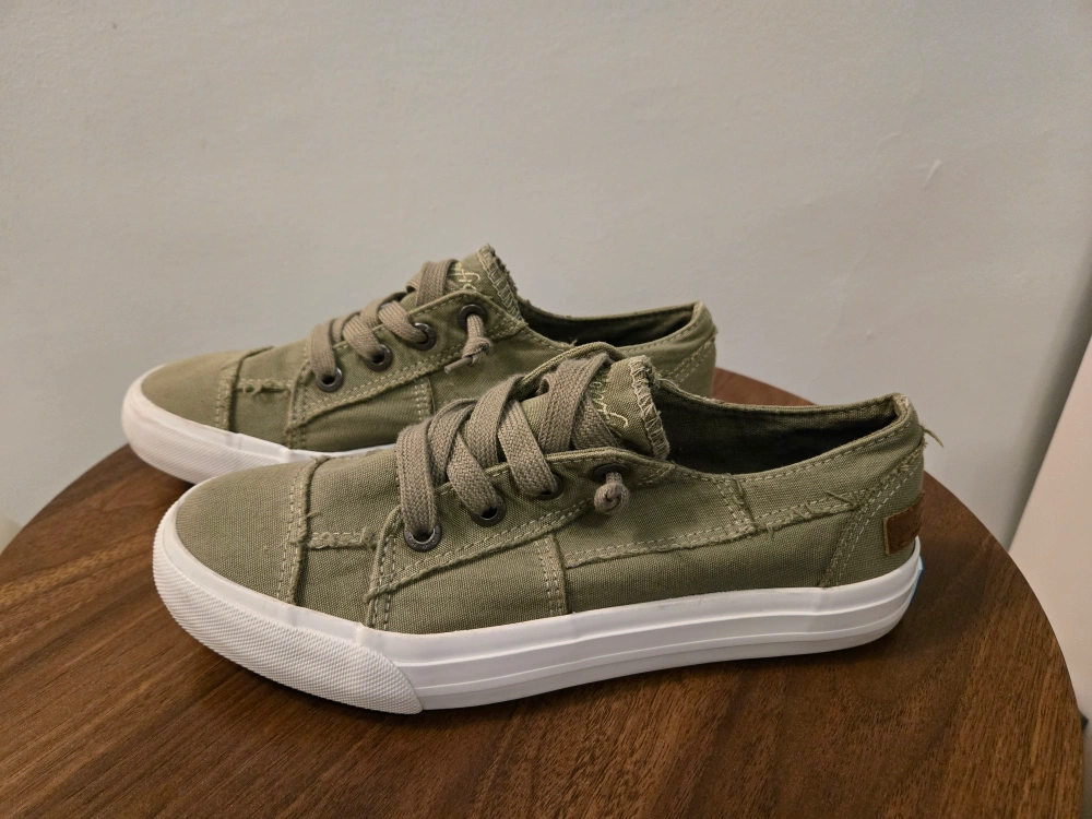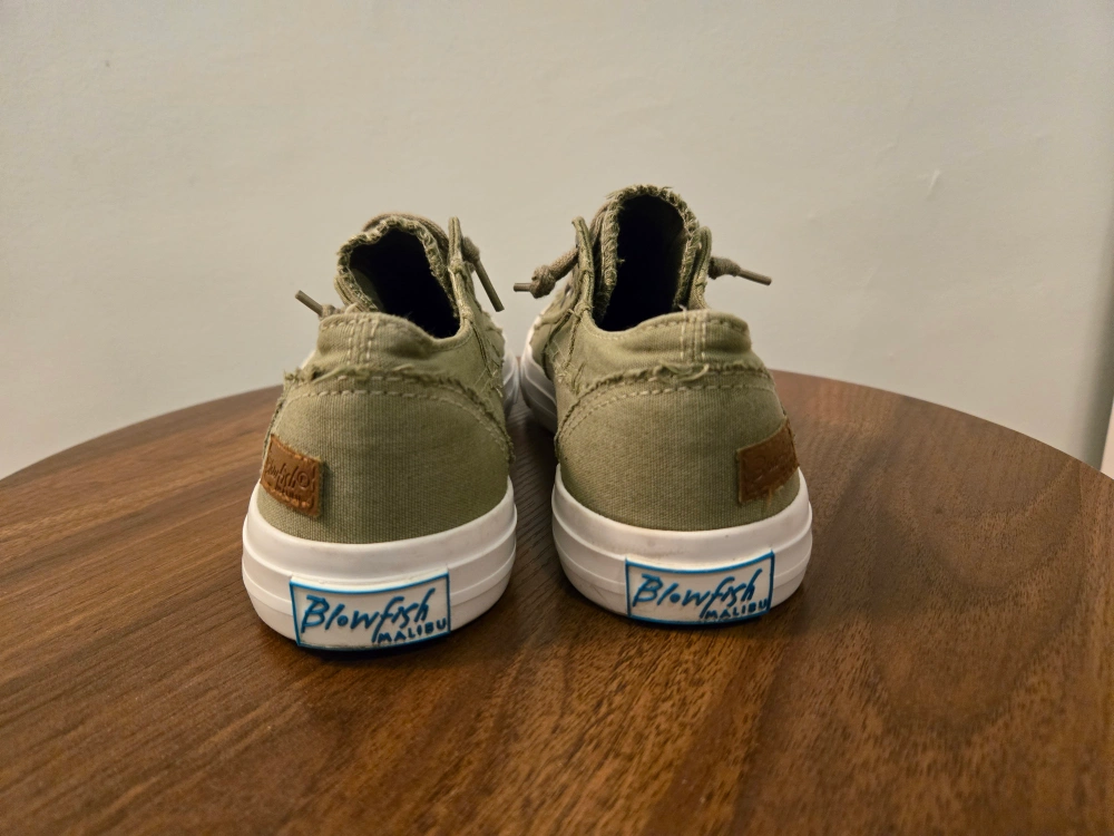 These Blowfish Malibu sneakers are in great condition and ready for a new home! They feature a stylish olive green canvas upper and a comfortable white sole. Perfect for casual wear!