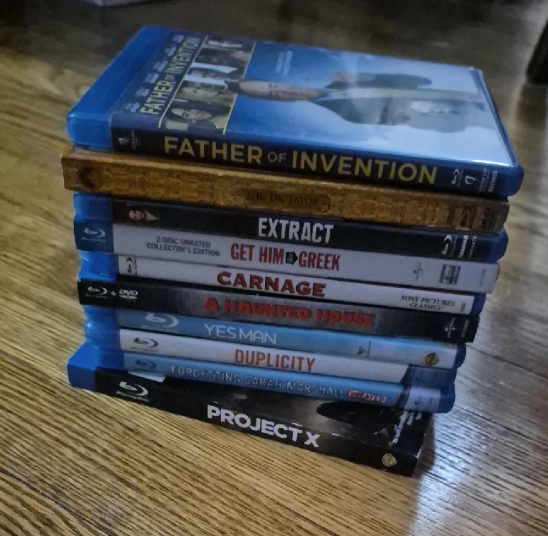 Selling a collection of Blu-ray movies! Titles include: - Project X (UNOPENED Blu-ray + DVD + UltraViolet Combo Pack) - Father of Invention - The Dictator - Extract - Get Him to the Greek (2-Disc Unrated Collector's Edition) - Carnage (Sony Pictures Classic) - A Haunted House - Yes Man - Duplicity - Forgetting Sarah Marshall