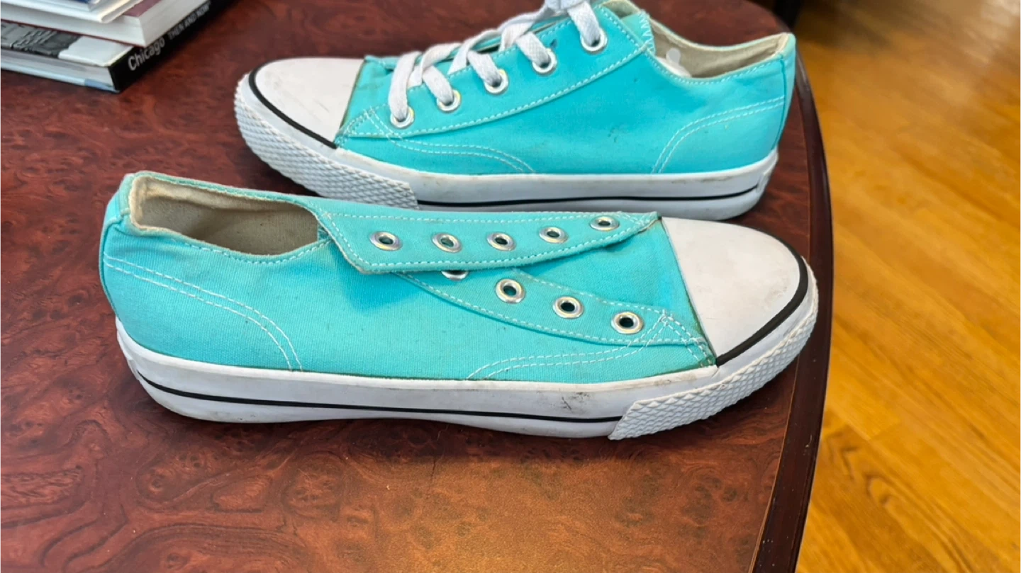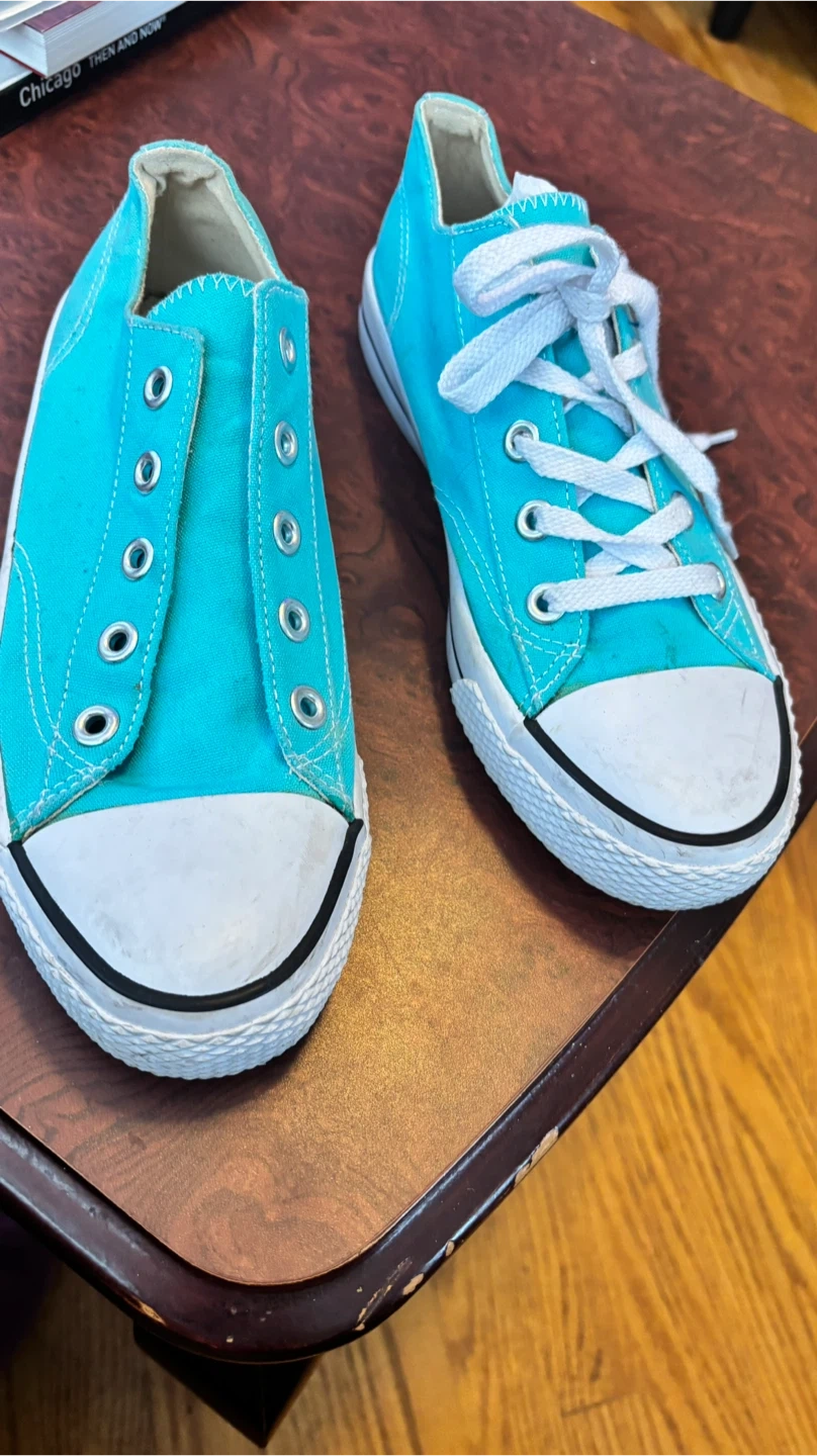 60Gently used blue canvas sneakers. They are in great condition, as seen in the photos, but missing a lace. Size 7.5.
