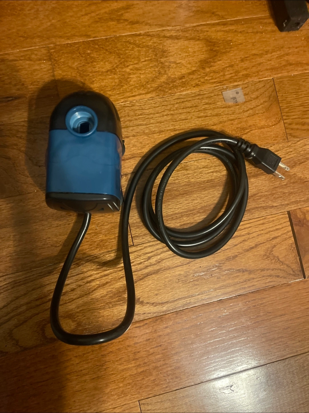 Selling a blue aquarium air pump. It's in good condition and ready to aerate your fish tank!