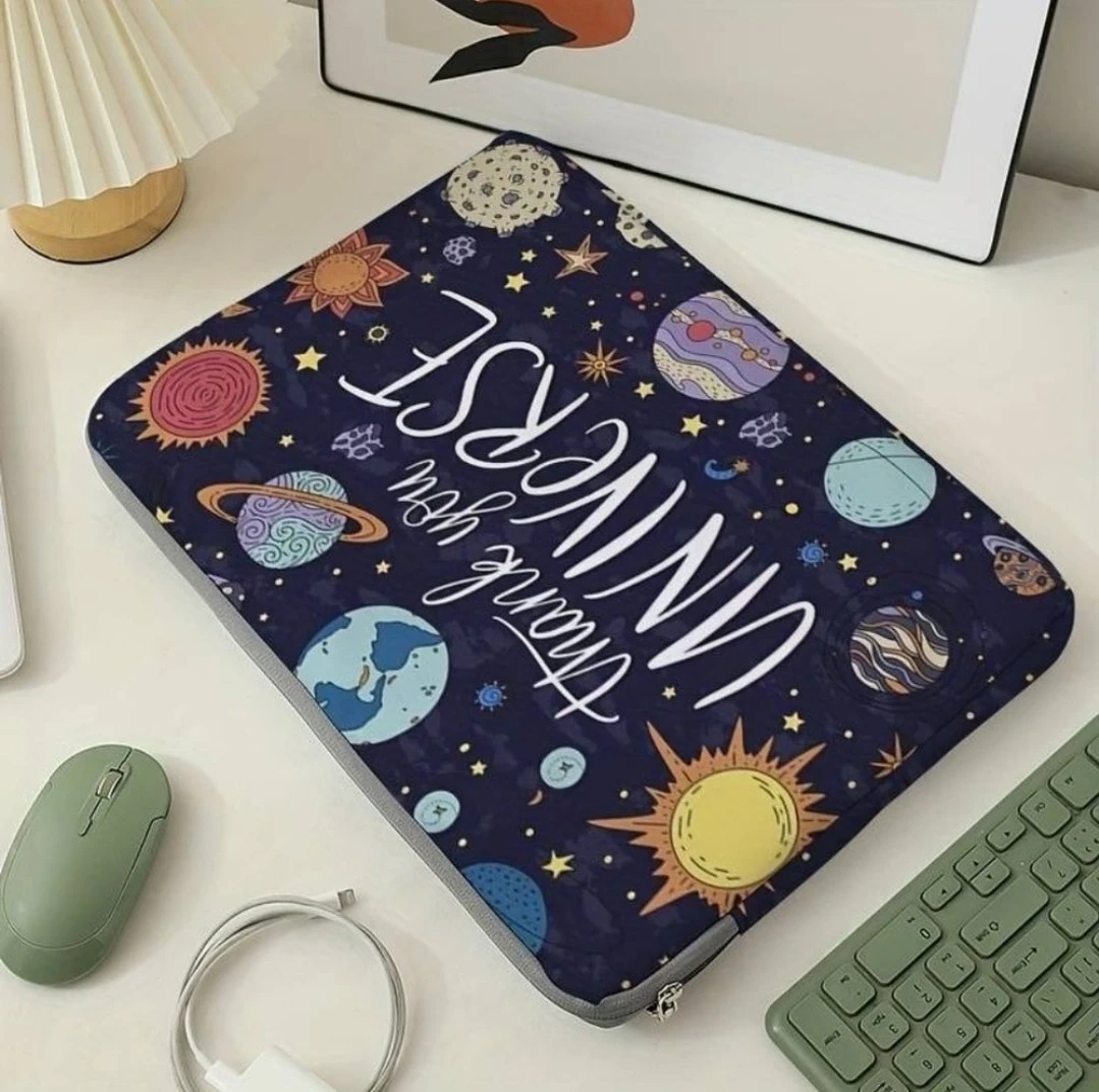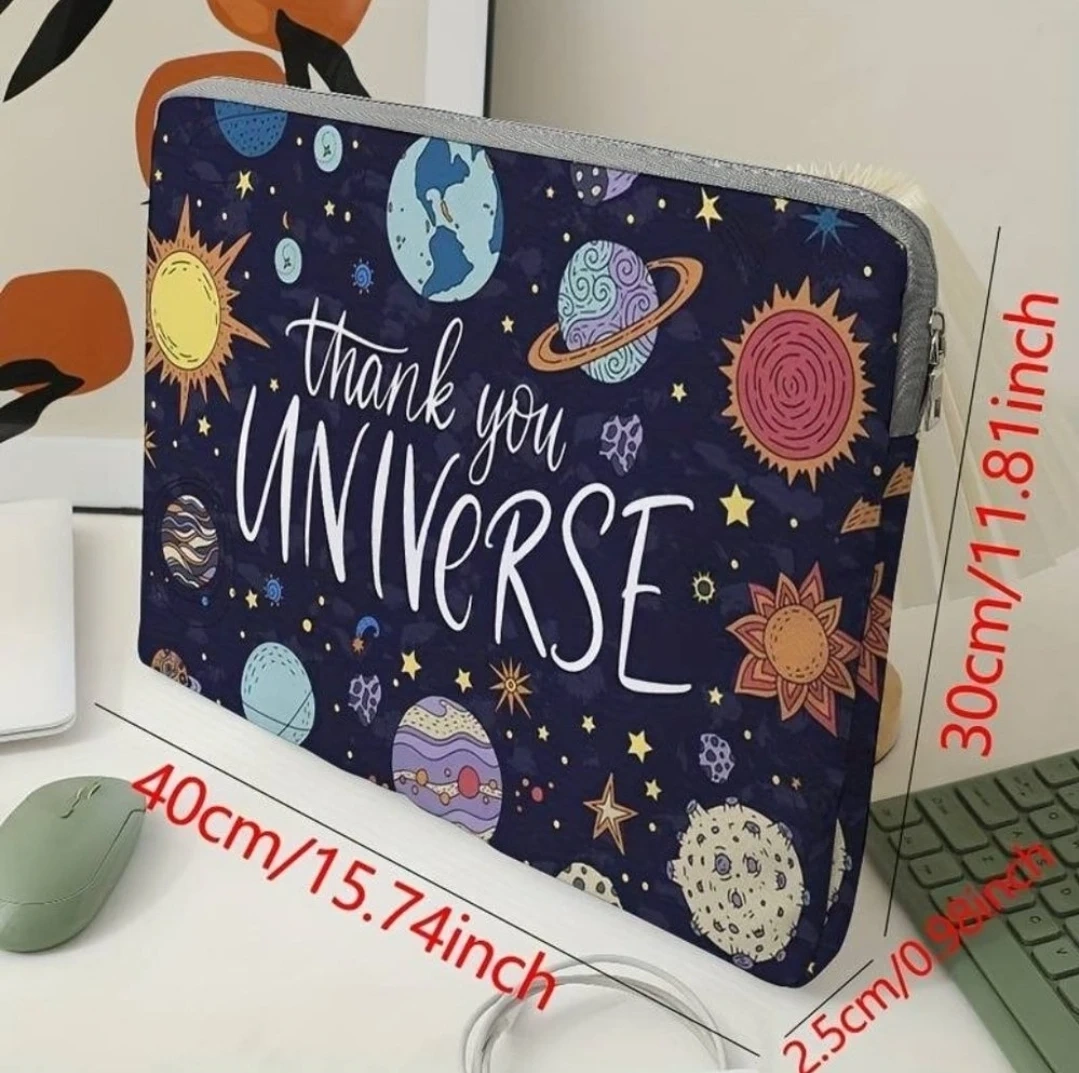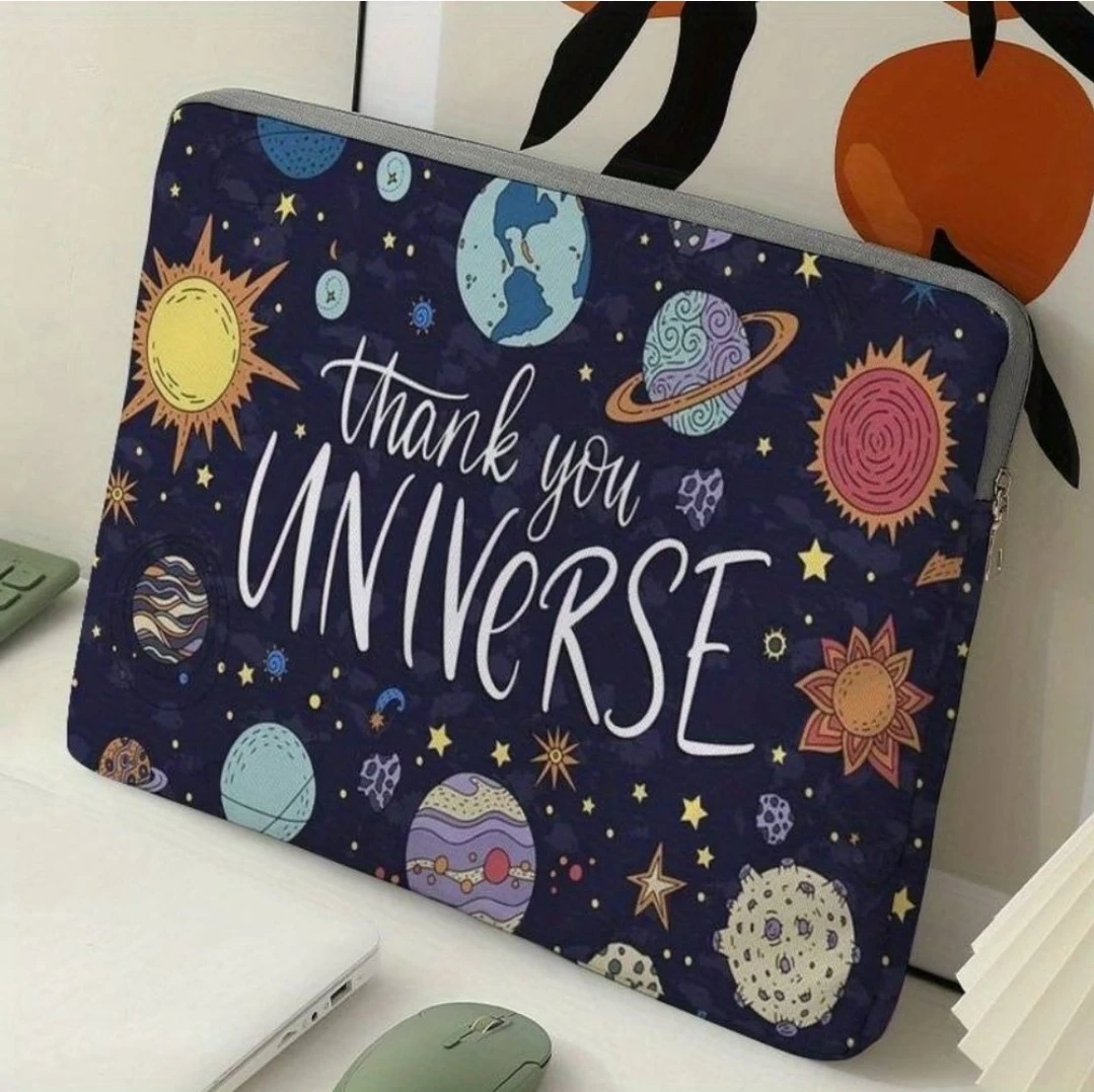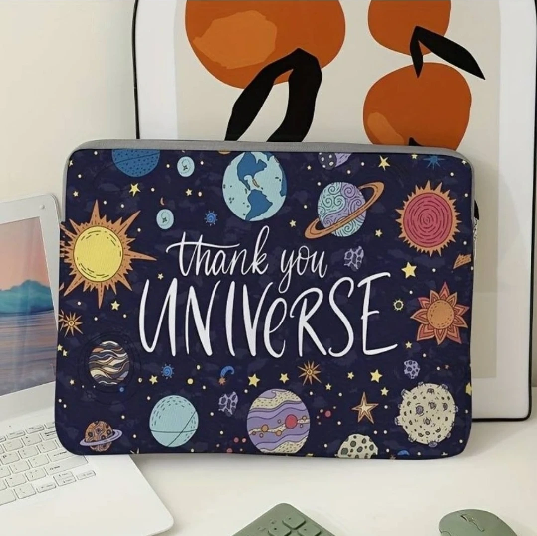 65New Blue Background Planet Computer Zipper Cover Bag "Thank You Universe" Laptop Bag Universe Theme Soft Bag Planets Pattern Verbiage: "Thank You Universe" Excellent Condition
