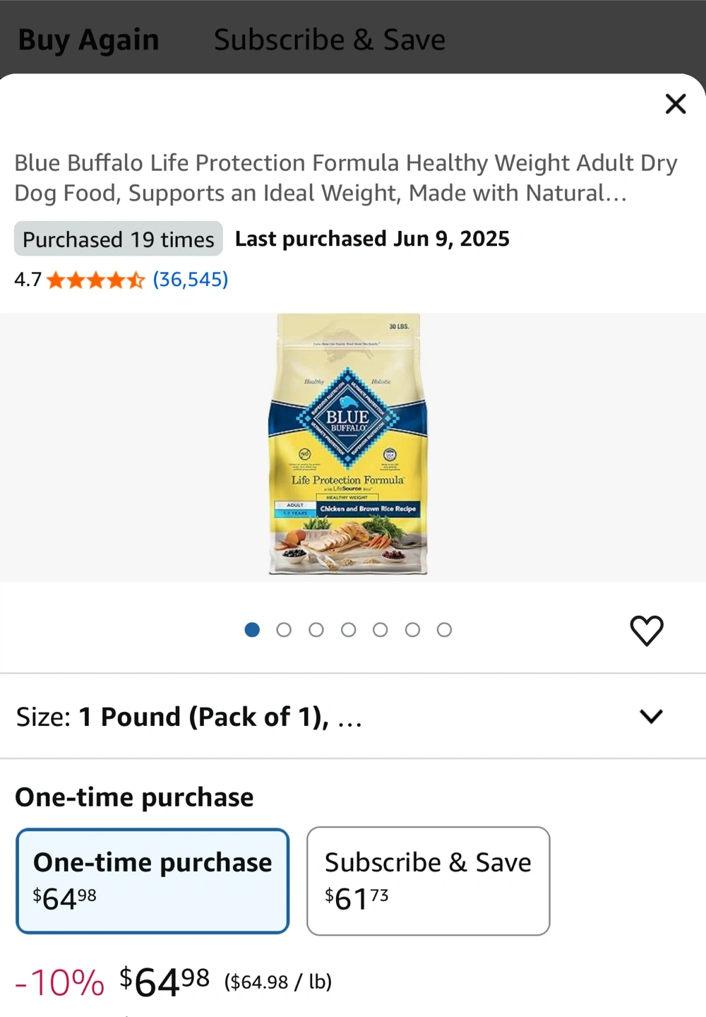 Selling up to 3 bags of Blue Buffalo Life Protection Formula Healthy Weight Adult Dry Dog Food. It supports an ideal weight and is made with natural ingredients. It's the Chicken and Brown Rice Recipe for adults 1-7 years. Last purchased June 9, 2025