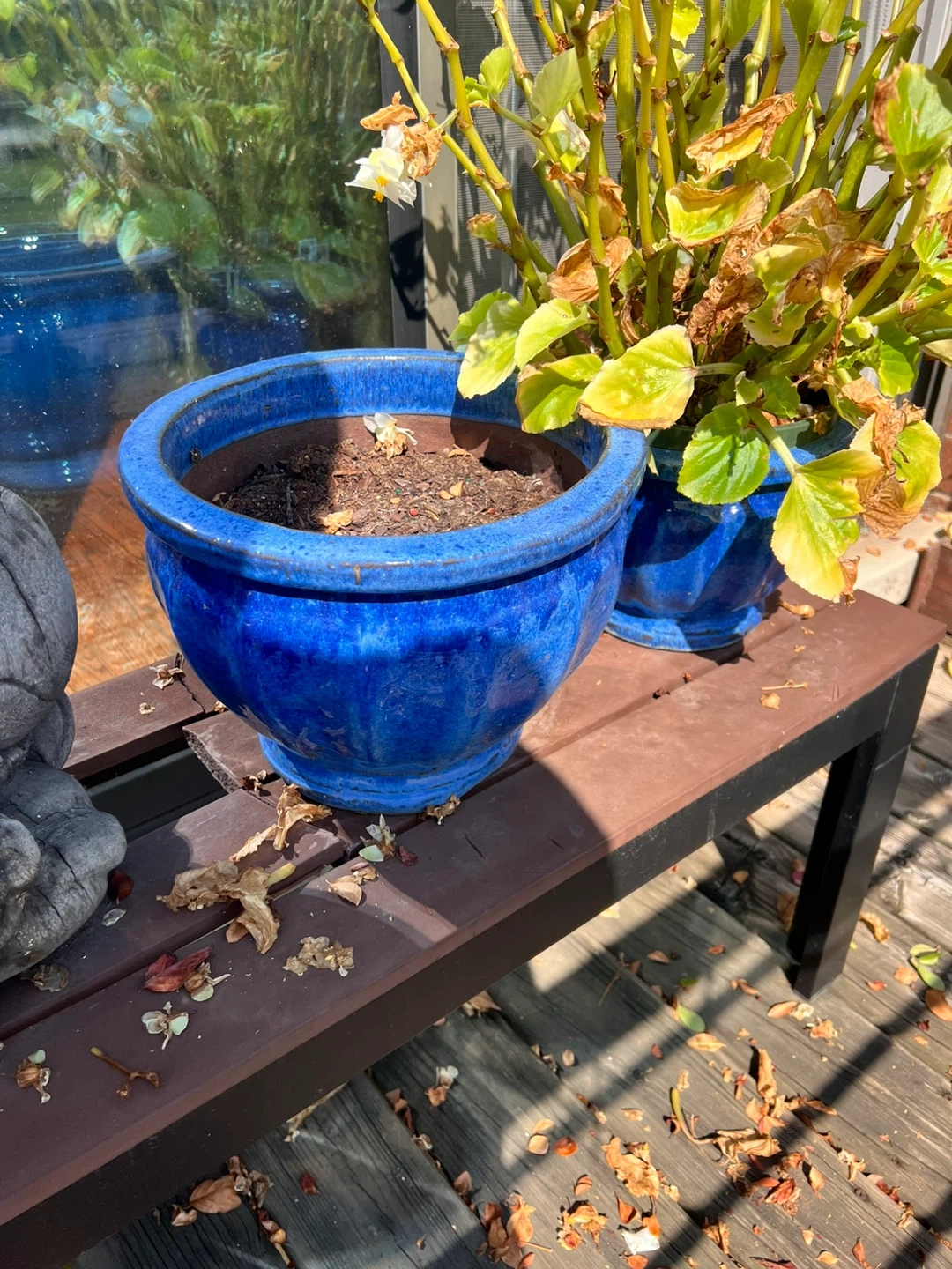 Selling 2 beautiful blue ceramic flower pot. It's in great condition and ready for your favorite plants.