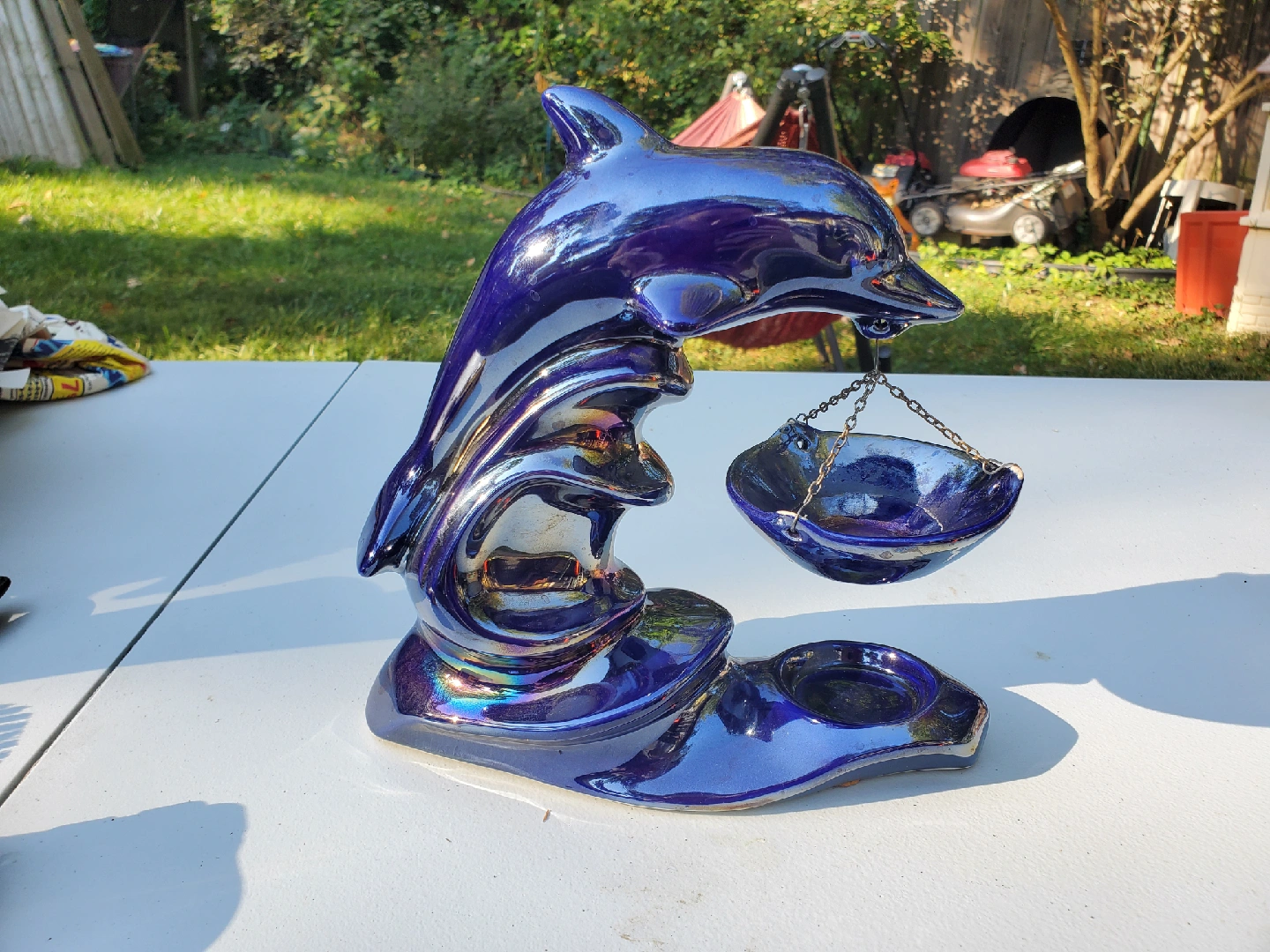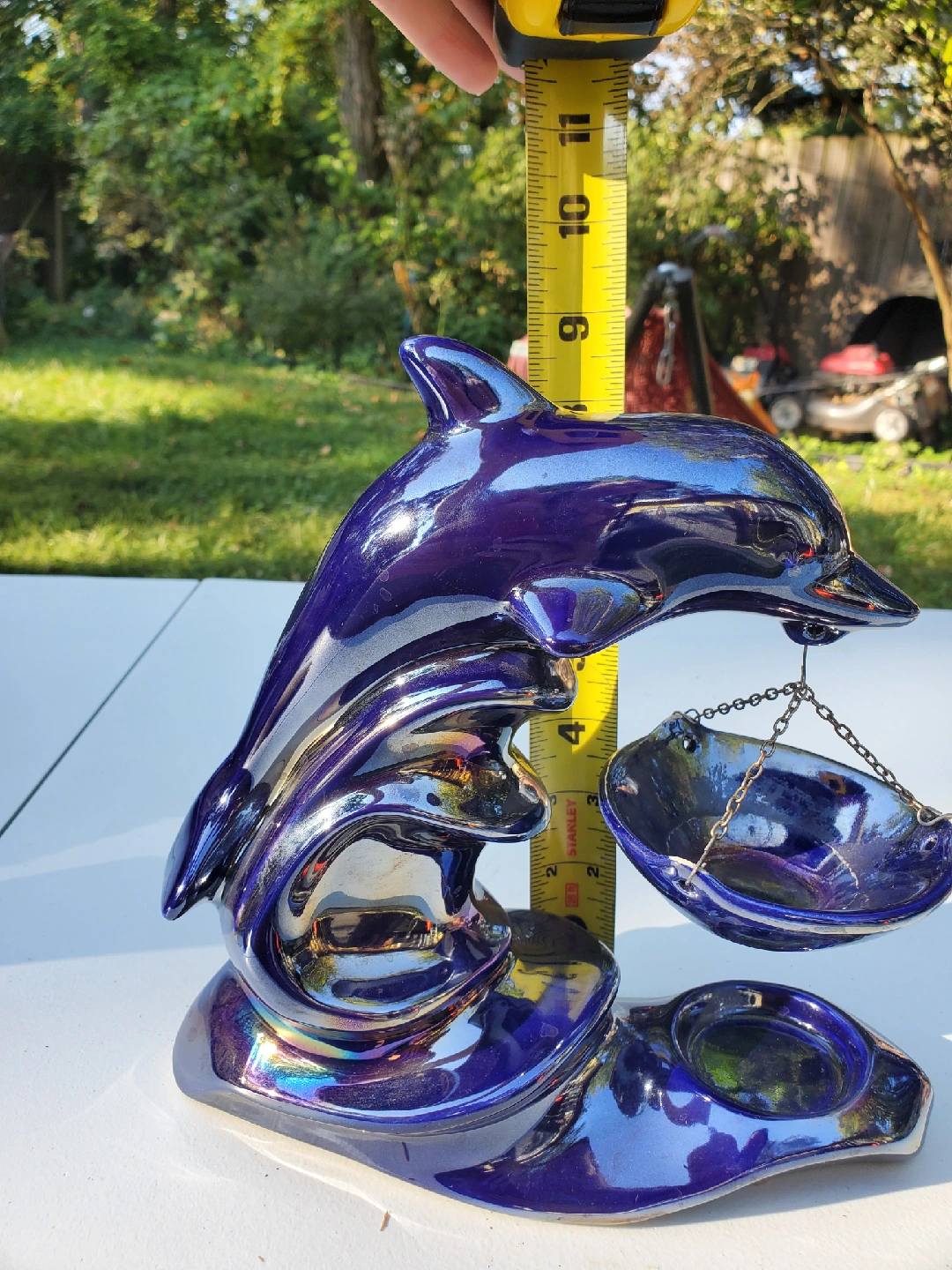 Selling a beautiful blue dolphin candle wax melt. It measures approximately 9 inches in length and 11 inches in height. This piece would make a lovely addition to any home decor