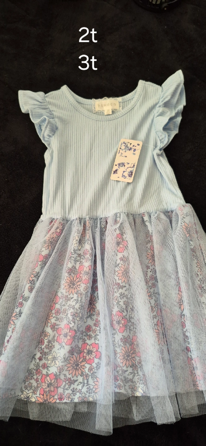 Light blue floral dress. New with tags. Sizes 2T and 3T