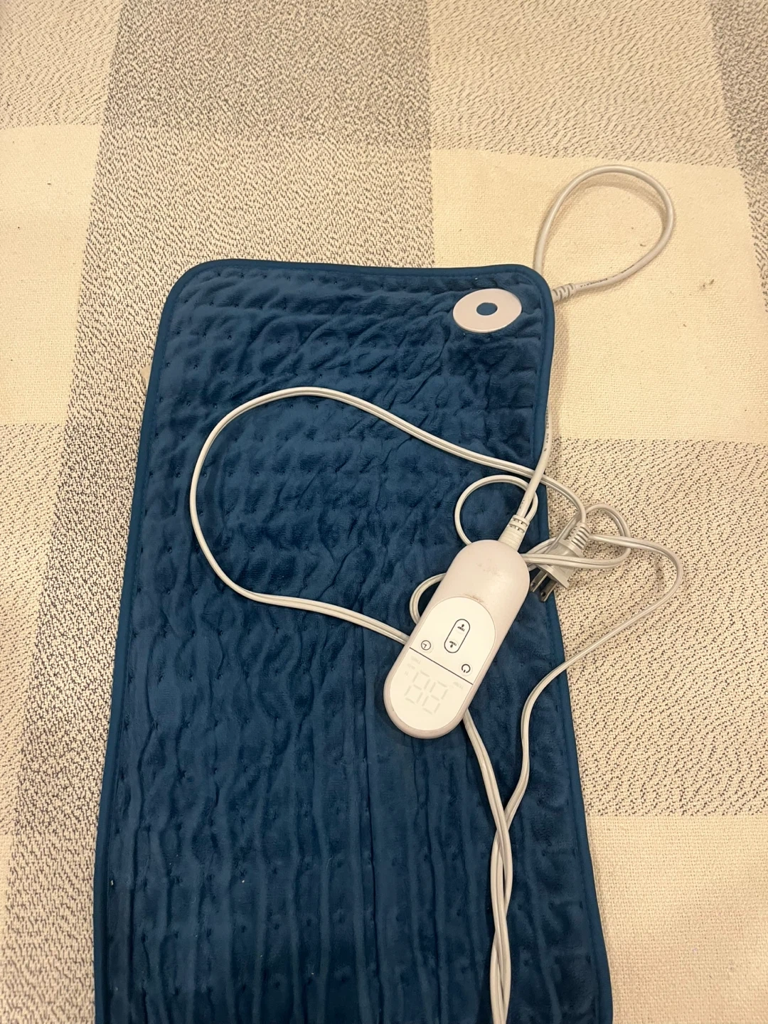 Selling a blue heated pad. It comes with a controller to adjust the temperature. Great for staying warm on chilly days!