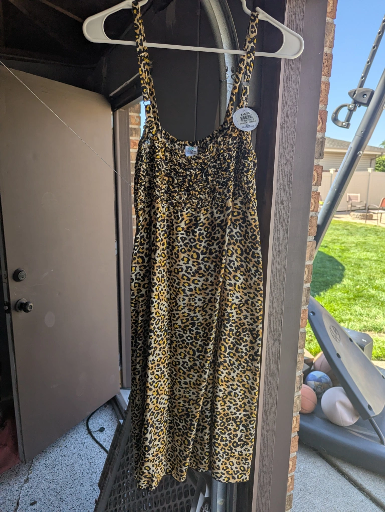 Here's a cute Blue Island dress in a fun leopard print! It's a size small and appears to be in great condition. The original tag is still attached!