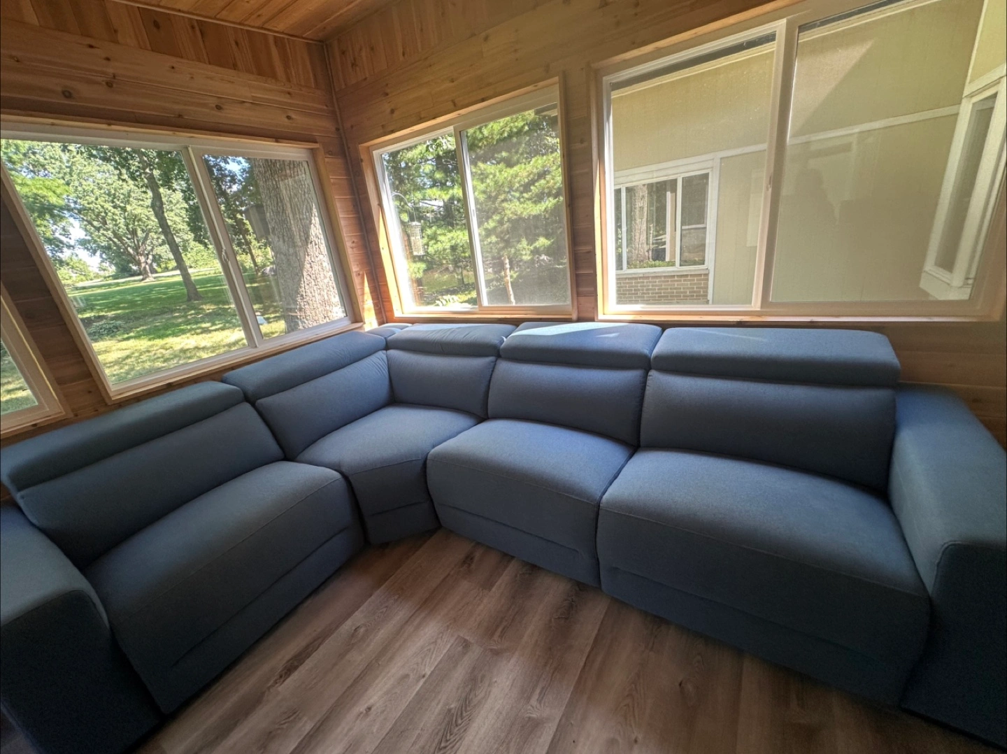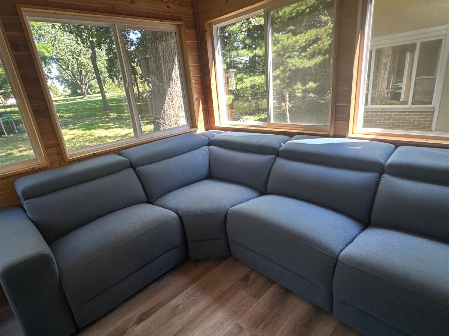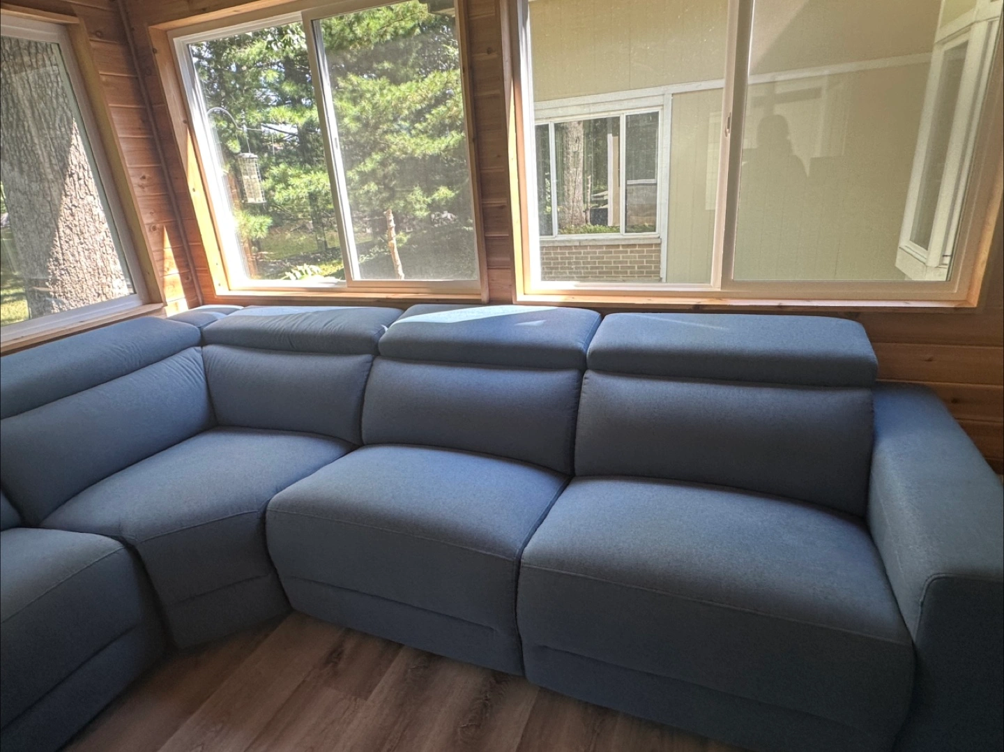 Electric power for sofa a comfortable blue modular sectional sofa. It's in great condition like new i buy from macy’s custom modeled, but not fit in my room. Electric 2 recliner corner in each corner, light blue ( midnight color) and ready to add some style to your living space!