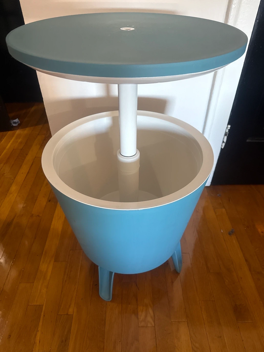 60This blue outdoor rolling patio cooler is perfect for keeping your drinks cold during parties or gatherings! It's in great condition and ready to use