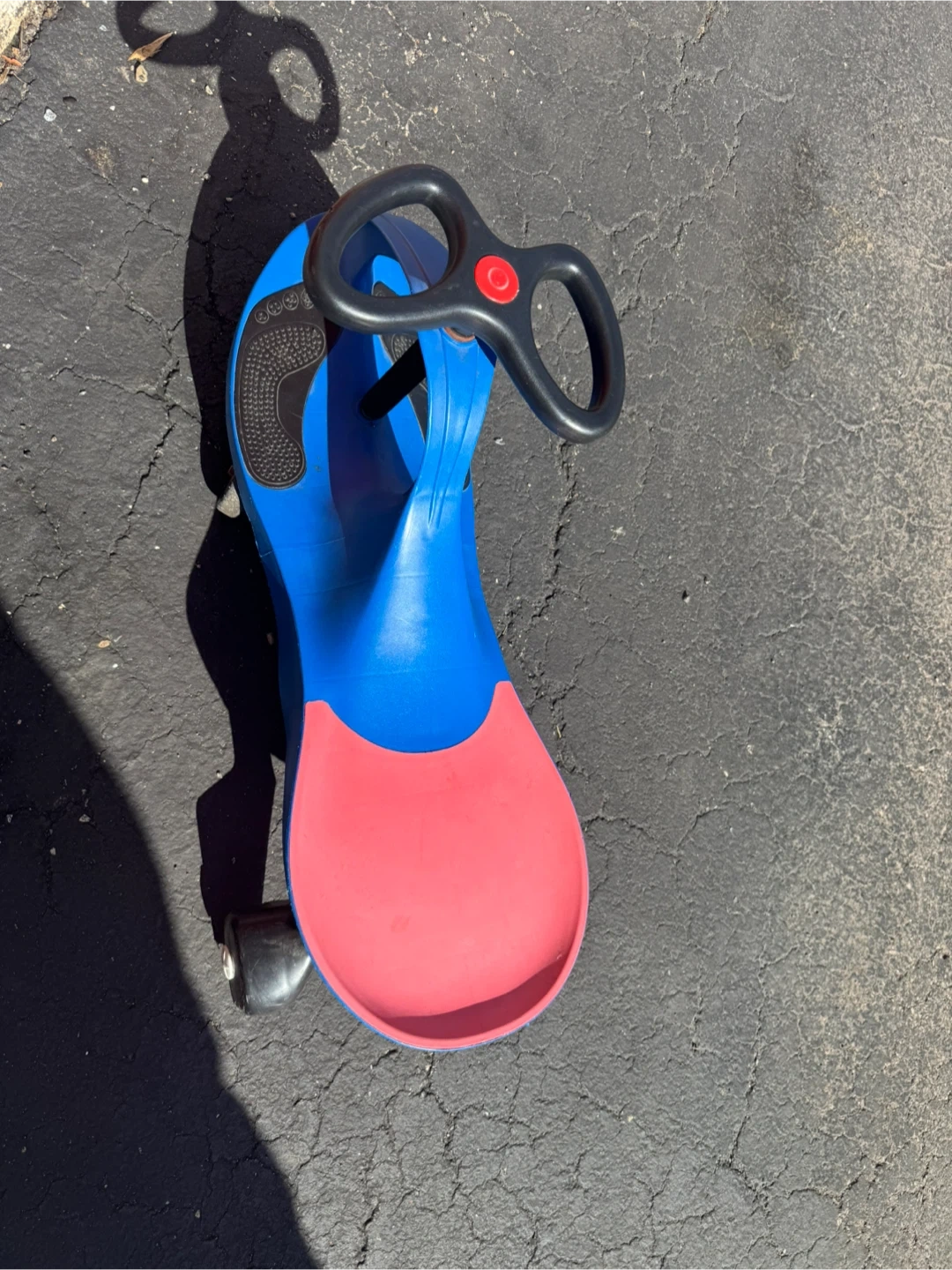 Selling a fun wiggle car! It's blue and pink and perfect for kids to ride around on. It's in good condition and ready for a new home