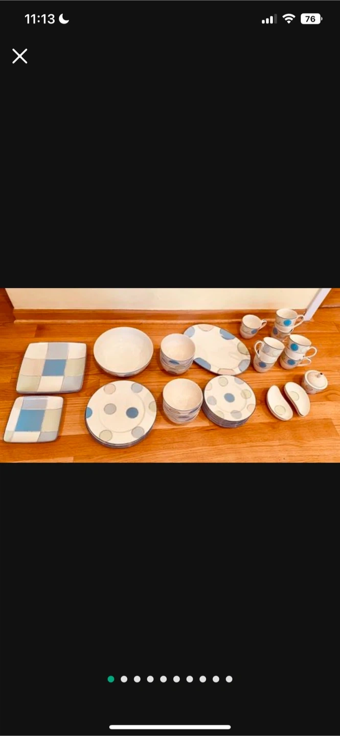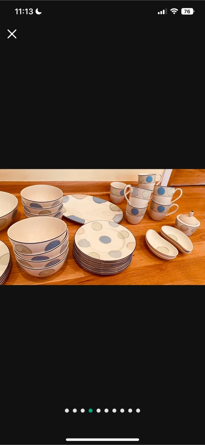 Noritake Ambiance set of dishes. Gorgeous white with blue and green. Selling a dinnerware set with a cute blue polka dot design! It includes plates, bowls, cups, and other serving pieces. Great for adding a touch of fun to your dining table Absolutely gorgeous Noritake Ambiance set of dishes. Freezer to oven to table, microwave and dishwasher safe. Java blue collection. Large and small plates, soup bowls, serving plates, cups, sugar bowl, etc.!