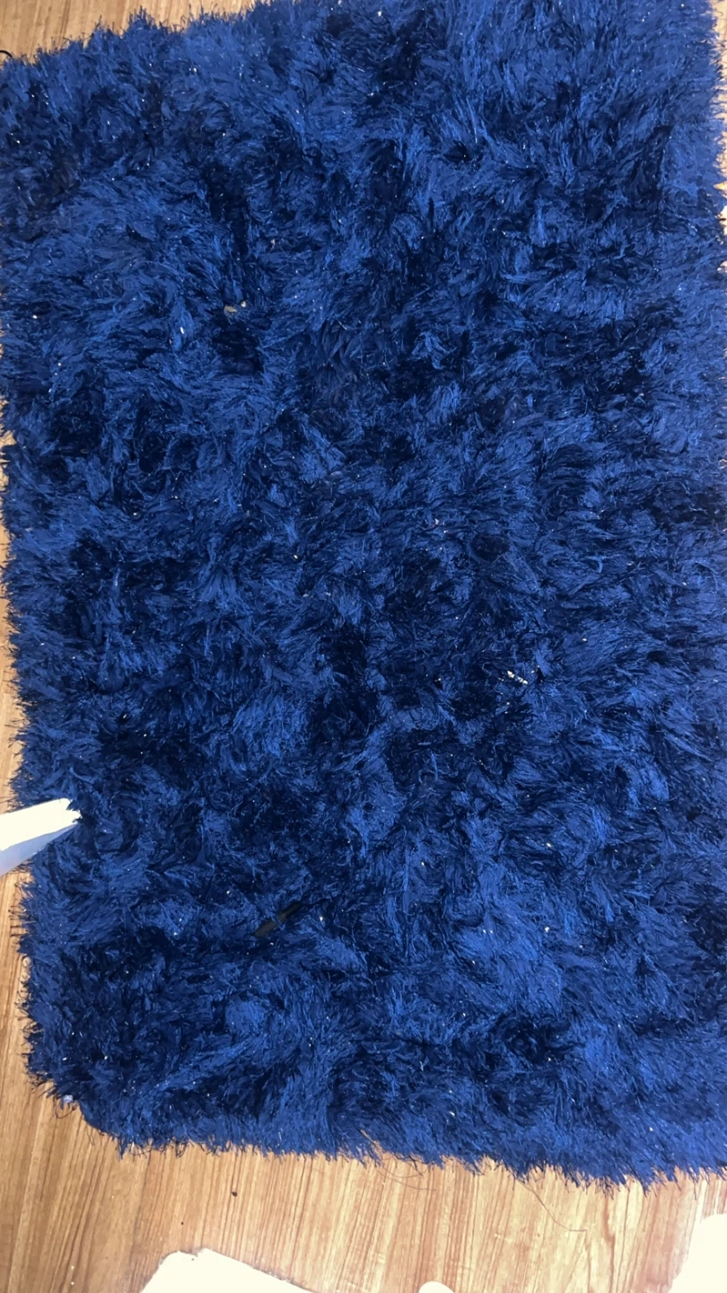 75This is a blue shag rug. It would look great in any room!