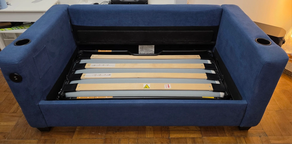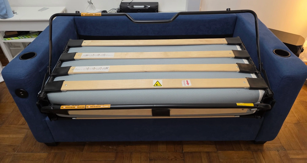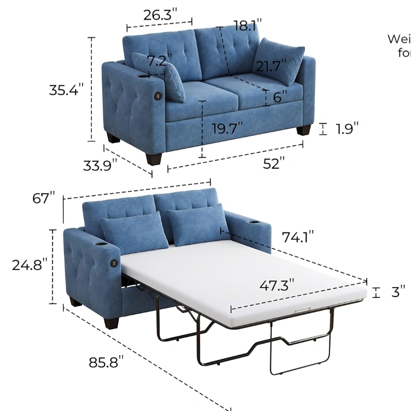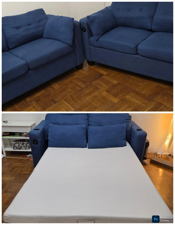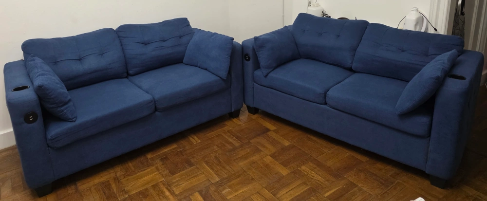 -Both sofas are clean. -2 USB per sofa (1 need to buy a switch the other works fine) -4 Cup Holders (1 on each arm) -Pretty good conditions. -2 Mattresses included. -System works pristine, like new. -They are heavy, so you will need help to move them. -The system can be disabled for easier transport. -They need to go today or tomorrow... (Saturday or Sunday) -Located on the 3rd floor (no elevator). For safety reasons, I only talk inside Carrot.