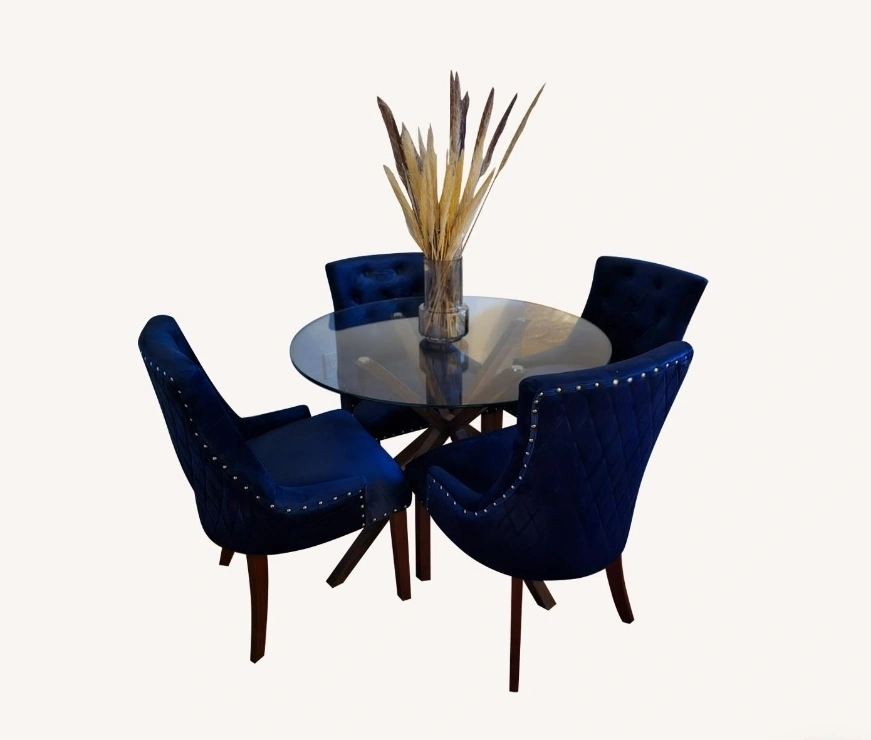 4 Velvet Dining Chair And Black glass Dining Room Table