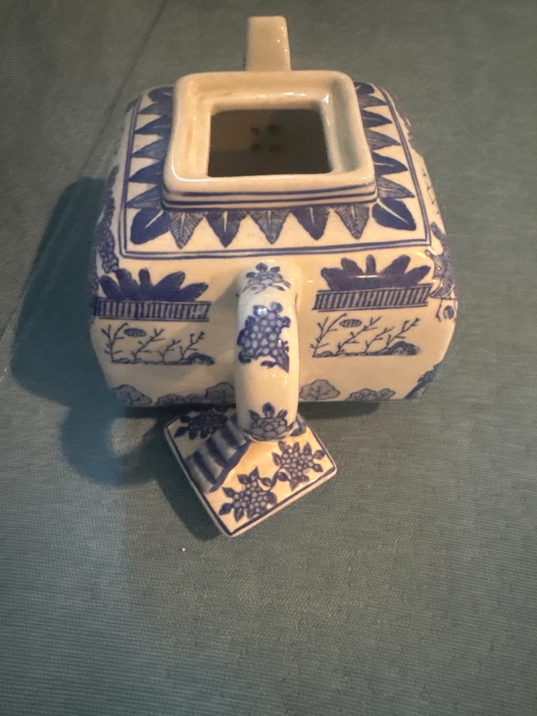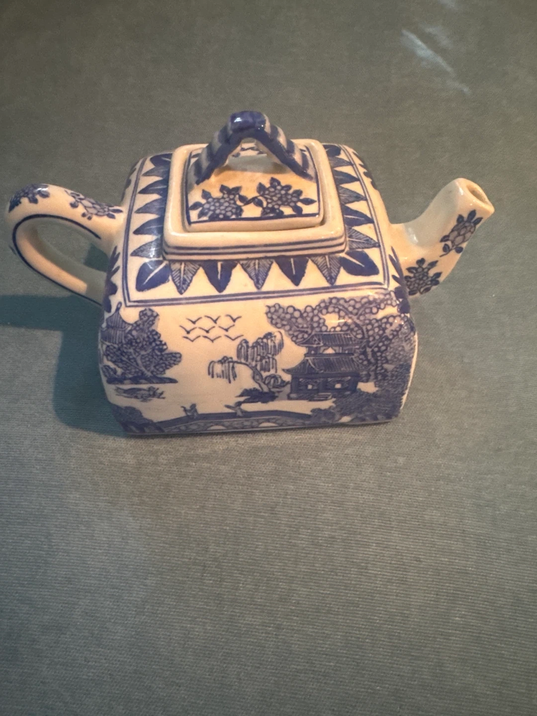 A lovely Blue Willow teapot! It features a classic blue and white design with traditional scenes. Perfect for tea lovers or as a decorative piece for your home