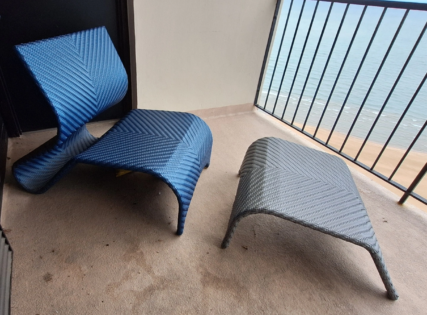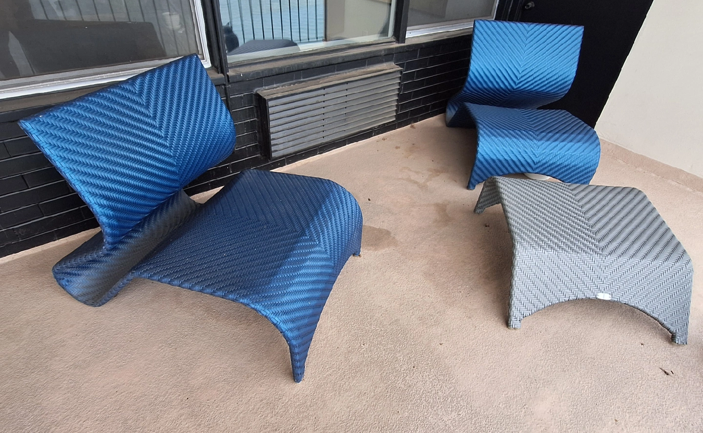 60Two blue woven outdoor chairs with one matching ottoman. Selling as a set. You pick up and haul at Edgewater Beach high rise. URL for chairs: https://eurolivingfurniture.com/products/maui-leisure-chair?variant=34510999060646&country=US¤cy=USD&utm_medium=product_sync&utm_source=google&utm_content=sag_organic&utm_campaign=sag_organic&srsltid=AfmBOoqzW9fzn_XcQN_9nbrKI0fRMiKSP54HVaOEvOkkuZA1m7y0YFIZhzg&com_cvv=8fb3d522dc163aeadb66e08cd7450cbbdddc64c6cf2e8891f6d48747c6d56d2c URL for ottoman: https://distincteddesigns.com/products/kannoa-maui-ottoman?currency=USD&variant=42564284350534&utm_source=google&utm_medium=cpc&utm_campaign=Google%20Shopping&stkn=967fdf3417f6&utm_term=&utm_campaign=Kannoa+-+Branded.&utm_source=adwords&utm_medium=ppc&hsa_acc=9866229690&hsa_cam=22551352721&hsa_grp=185197981171&hsa_ad=751739006772&hsa_src=g&hsa_tgt=pla-2301907025930&hsa_kw=&hsa_mt=&hsa_net=adwords&hsa_ver=3&gad_source=1&gad_campaignid=22551352721&gbraid=0AAAAAqqx5qQZIEciNMWKyAg0Xe4uumqWT&gclid=Cj0KCQjwjL3HBhCgARIsAPUg7a797ERLLHOZF59DFHl643L0uNEfgmPnMO8HVTmCa7lWafmK3NPfzvMaAstMEALw_wcB