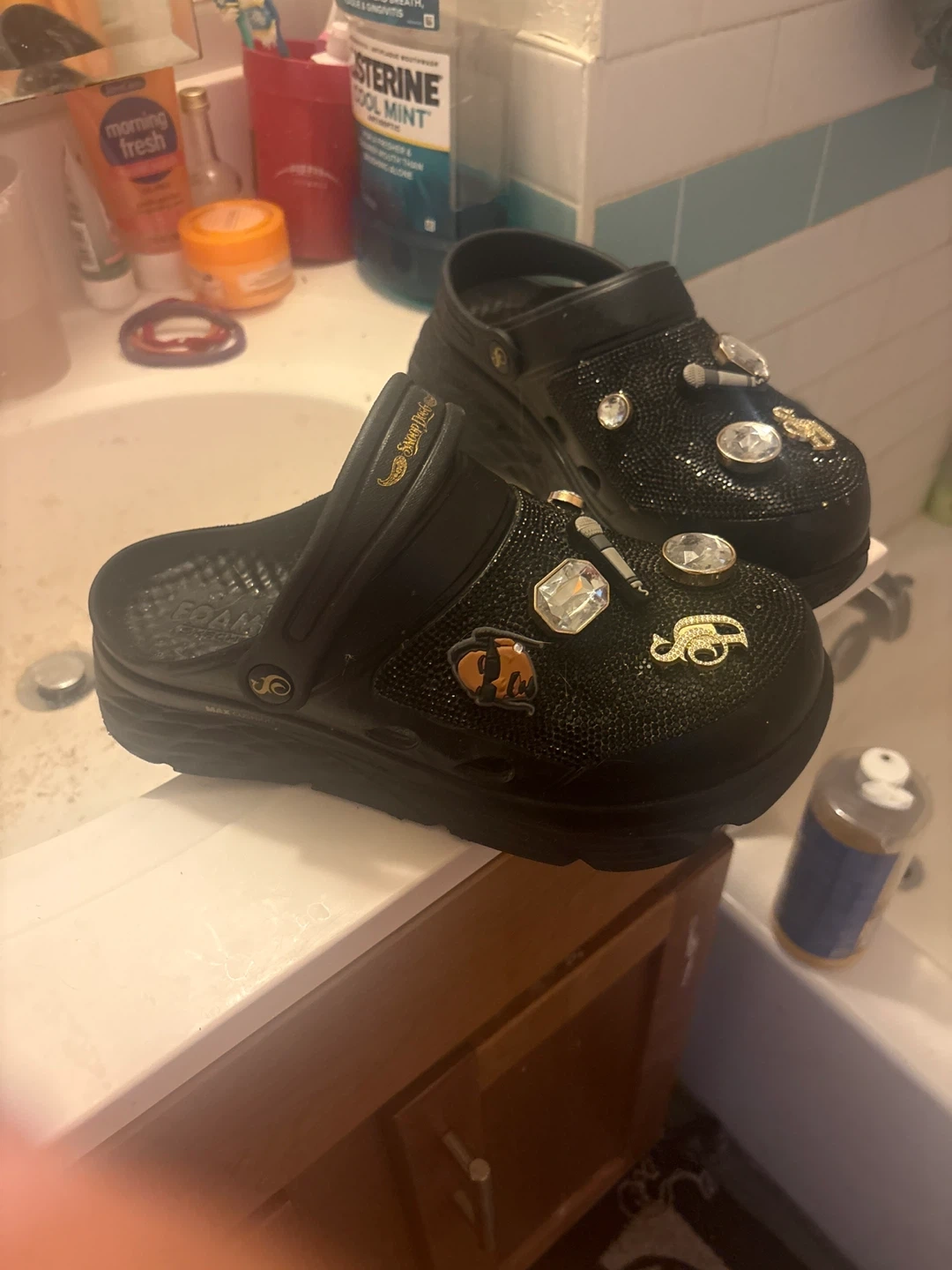 Black Crocs with Rhinestones and Charms